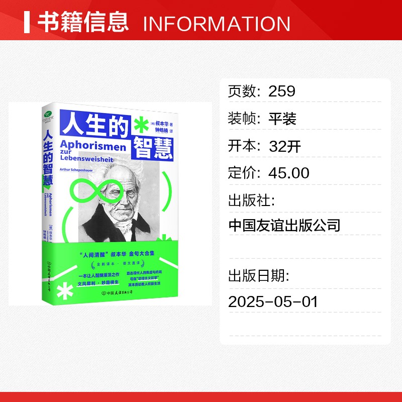 图书籍 人间清醒叔本华金句大合集 直击现代人 焦虑与内耗 德文直译 叔本华著 全新译本 中国友谊出版 人生 新华书店正版 智慧