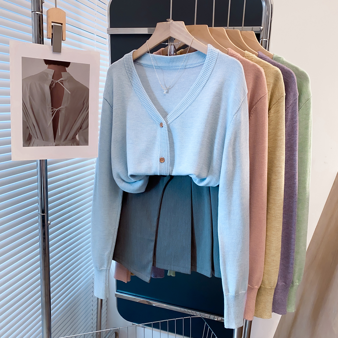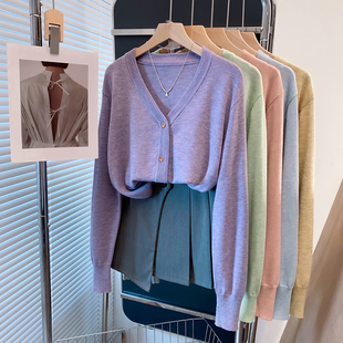 宽松慵懒风内搭上衣洋气外穿毛衣外套 新款 v领针织开衫 女2025秋装