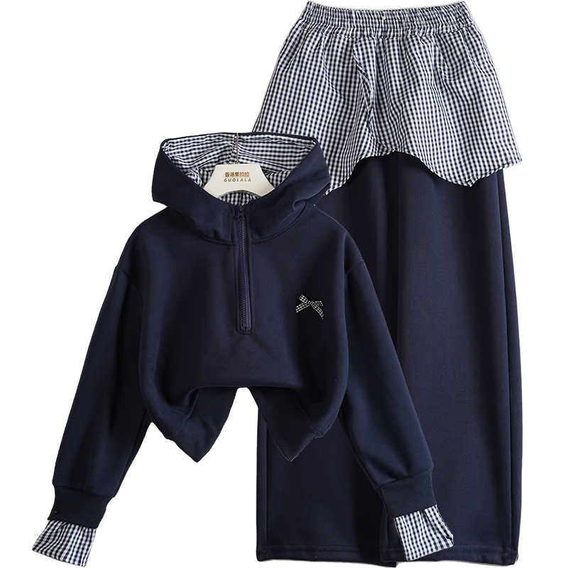中大童假两件屁帘裤 新款 子连帽两件套运动服 2025秋装 女童卫衣套装