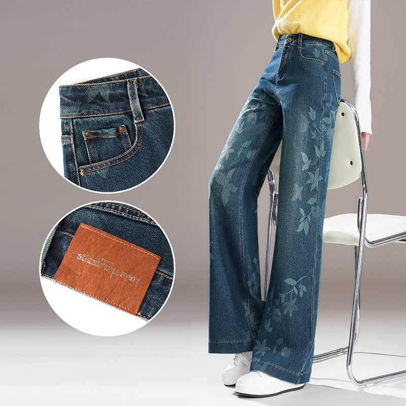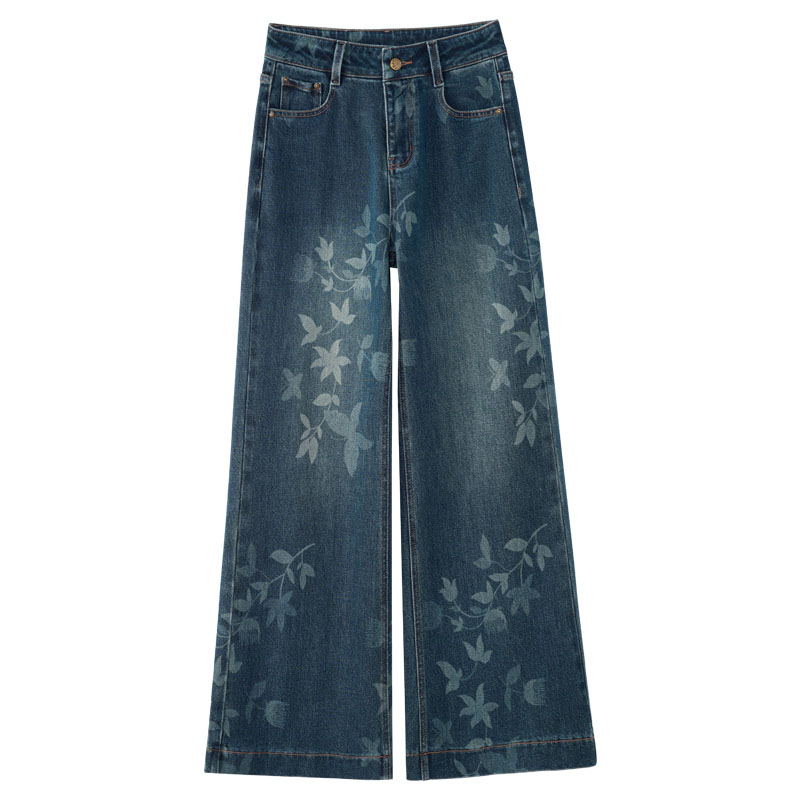 高腰显瘦垂感气质减龄大脚裤 新款 女2025秋季 复古蓝印花牛仔简喇裤