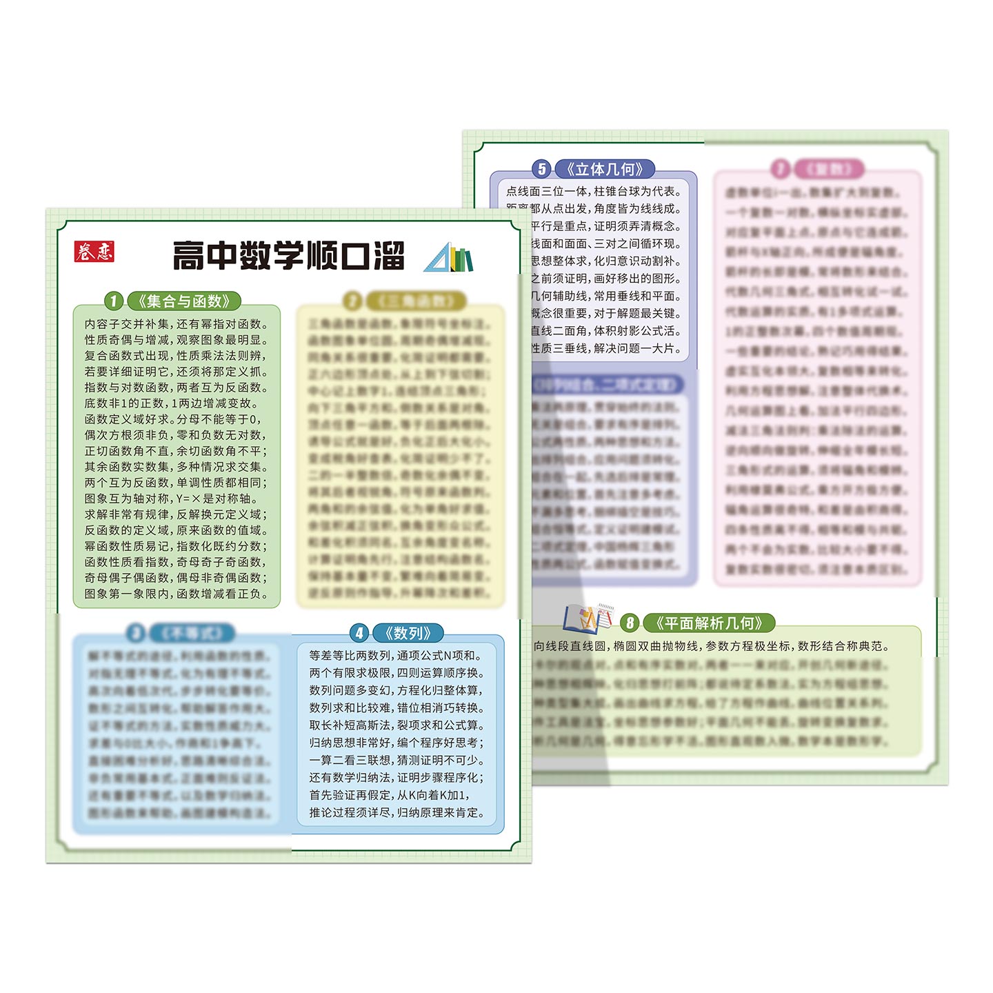 8组高中数学知识点速记 任选 正反两面 216 A4纸张大小 卷恋学习垫板高中数学顺口溜覆膜版 291mm 纸质版