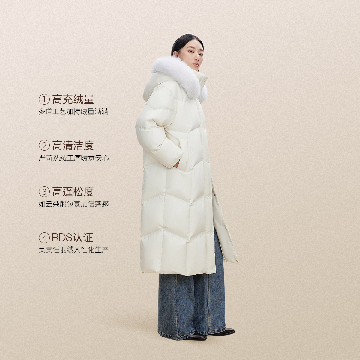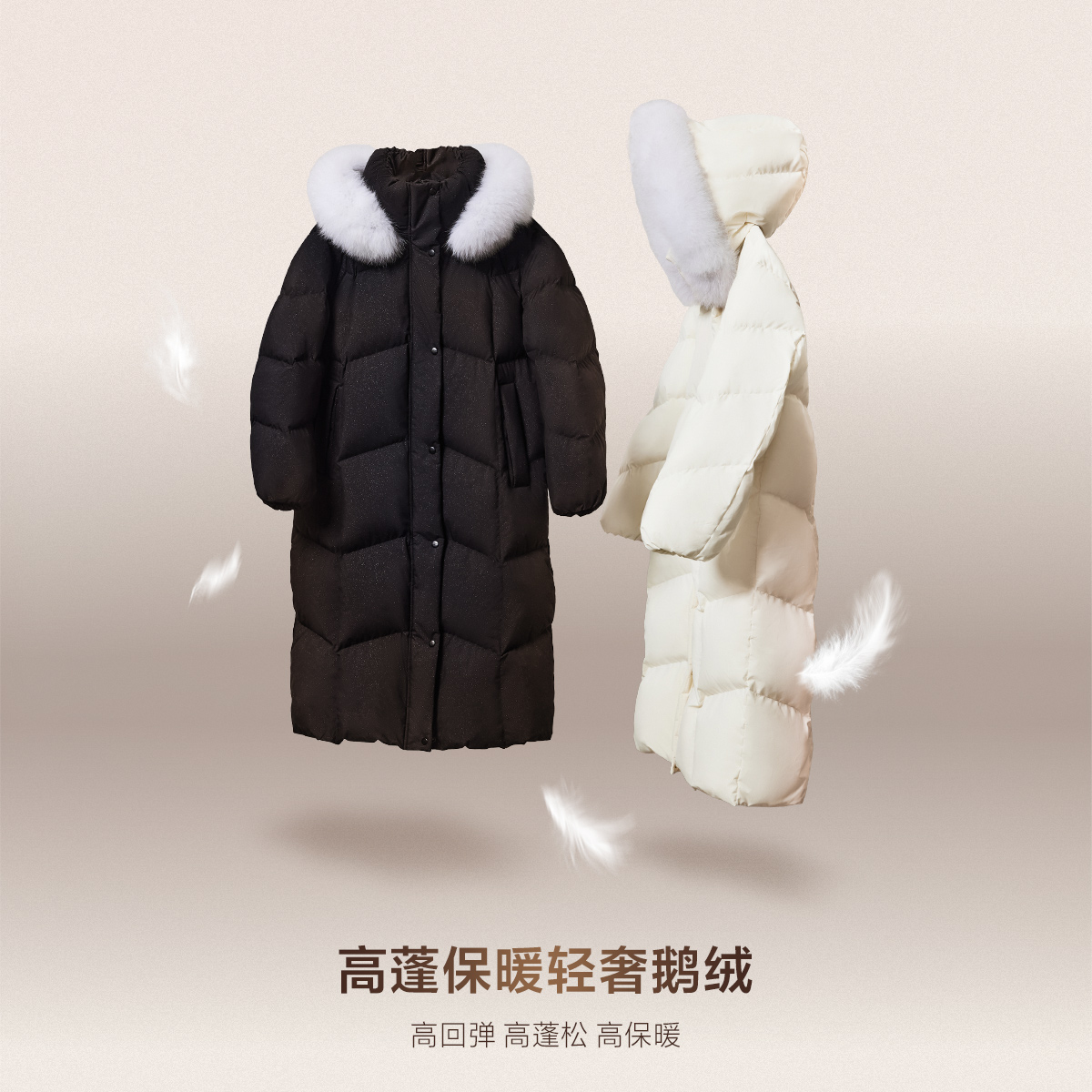 可拆卸狐狸毛领长款 新款 ONLY2025冬季 羽绒服女 鹅绒服