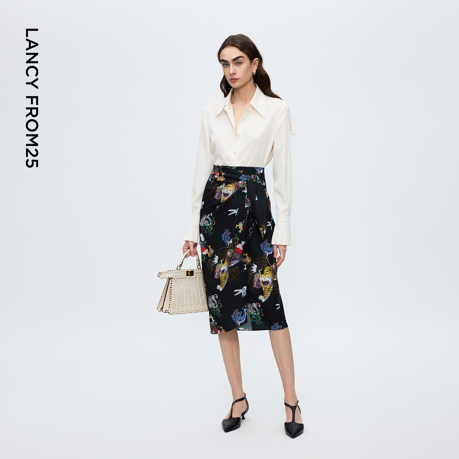 A字花卉提花工字褶半身裙 25秋冬新品 Desigual大西瓜 博主同款