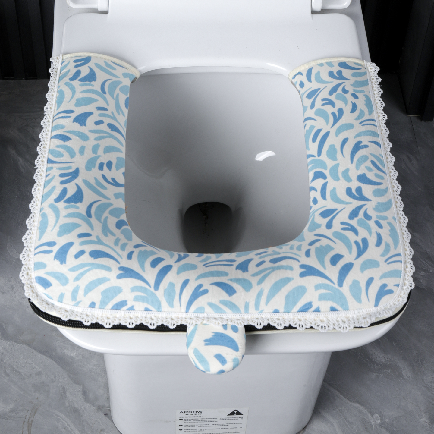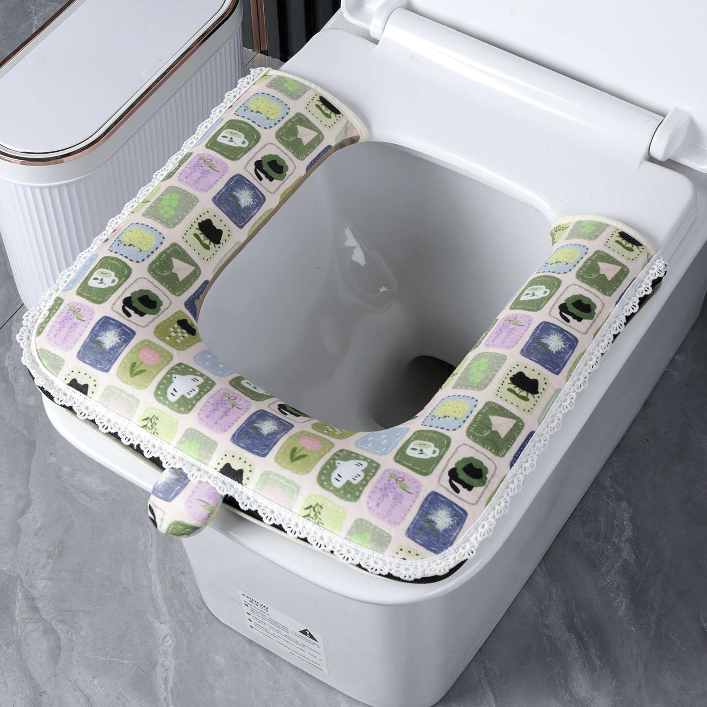 方形通用尺寸短绒半套马桶垫田园小清新家用加厚防水拉链款 坐便套