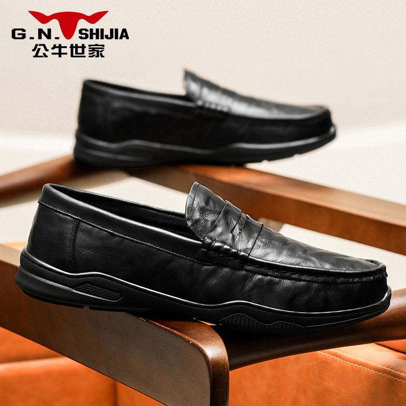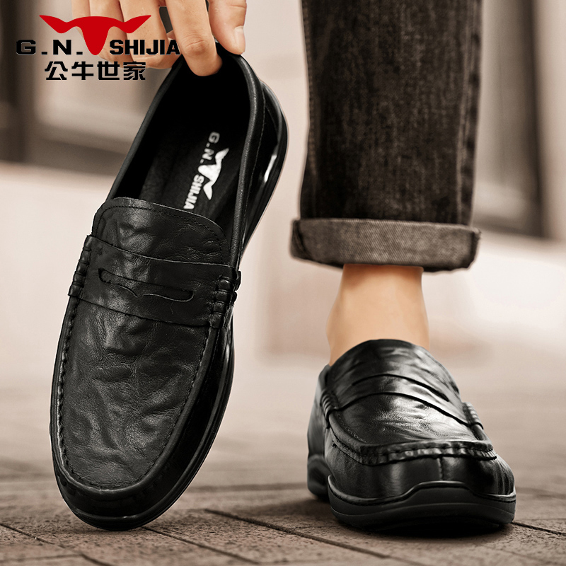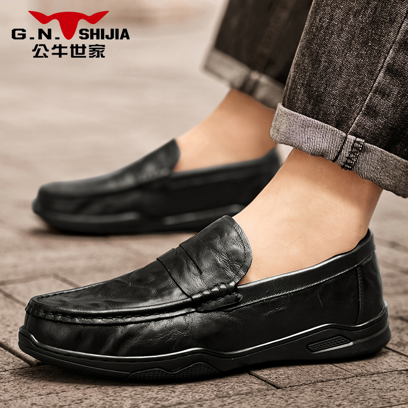 豆豆鞋 男一脚蹬懒人男鞋 秋季 商务休闲皮鞋 真皮乐福鞋 公牛世家男士
