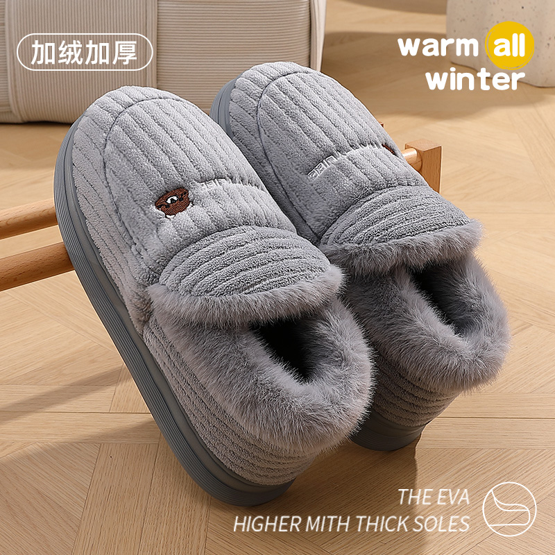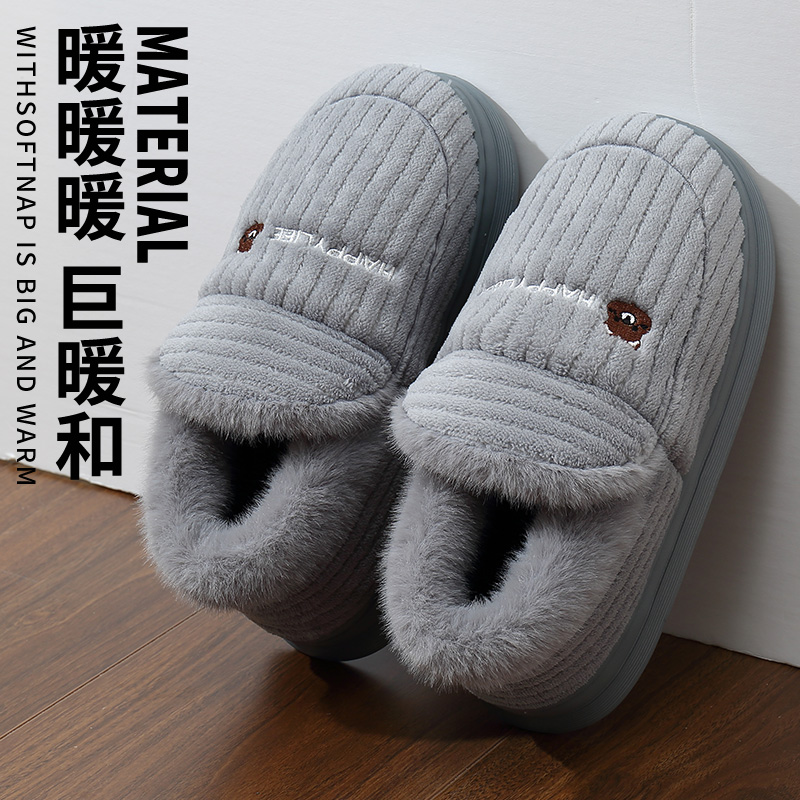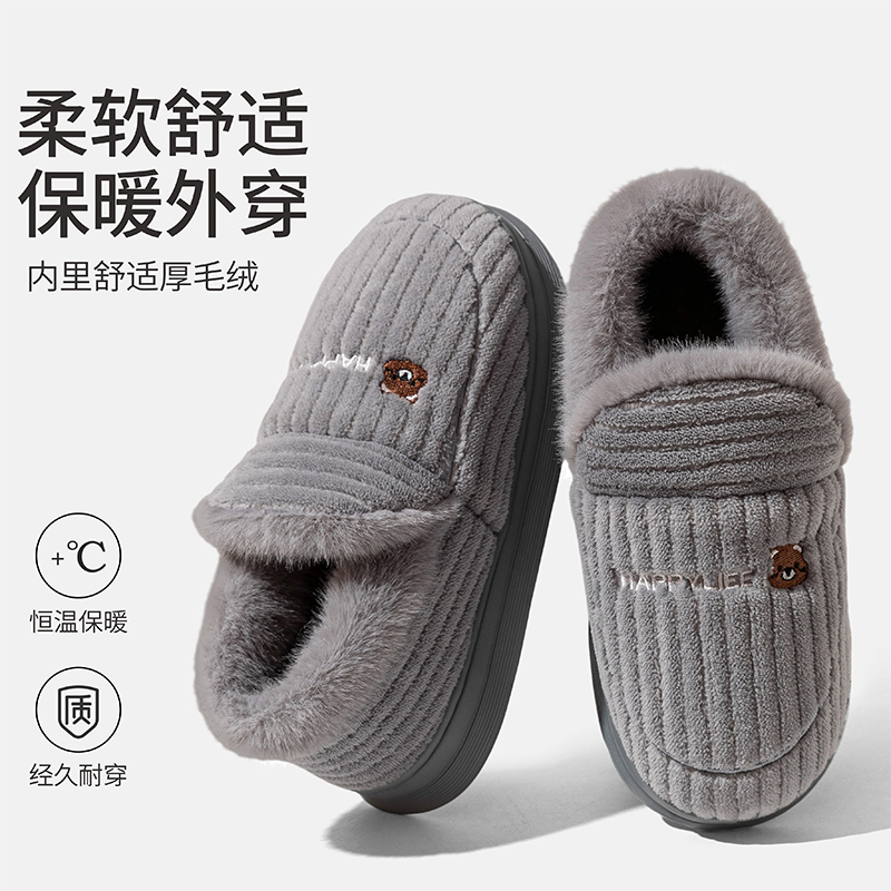 棉拖鞋 男款 男士 包跟室内家居保暖加绒厚底防滑踩屎感棉鞋 冬季 大码