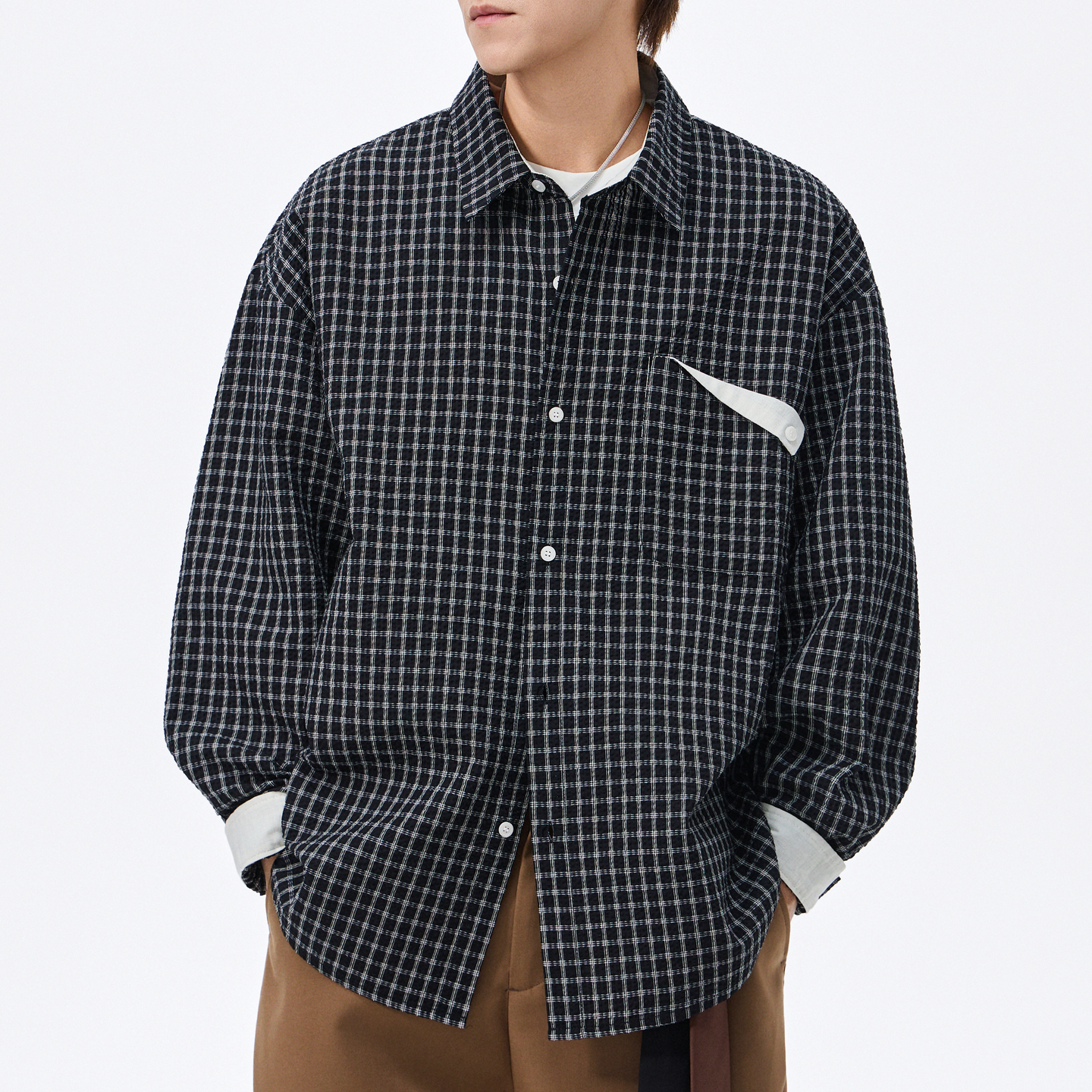 外套开衫 男士 衬衣免烫2025早秋新款 男长袖 外搭 日系藏青色格子衬衫