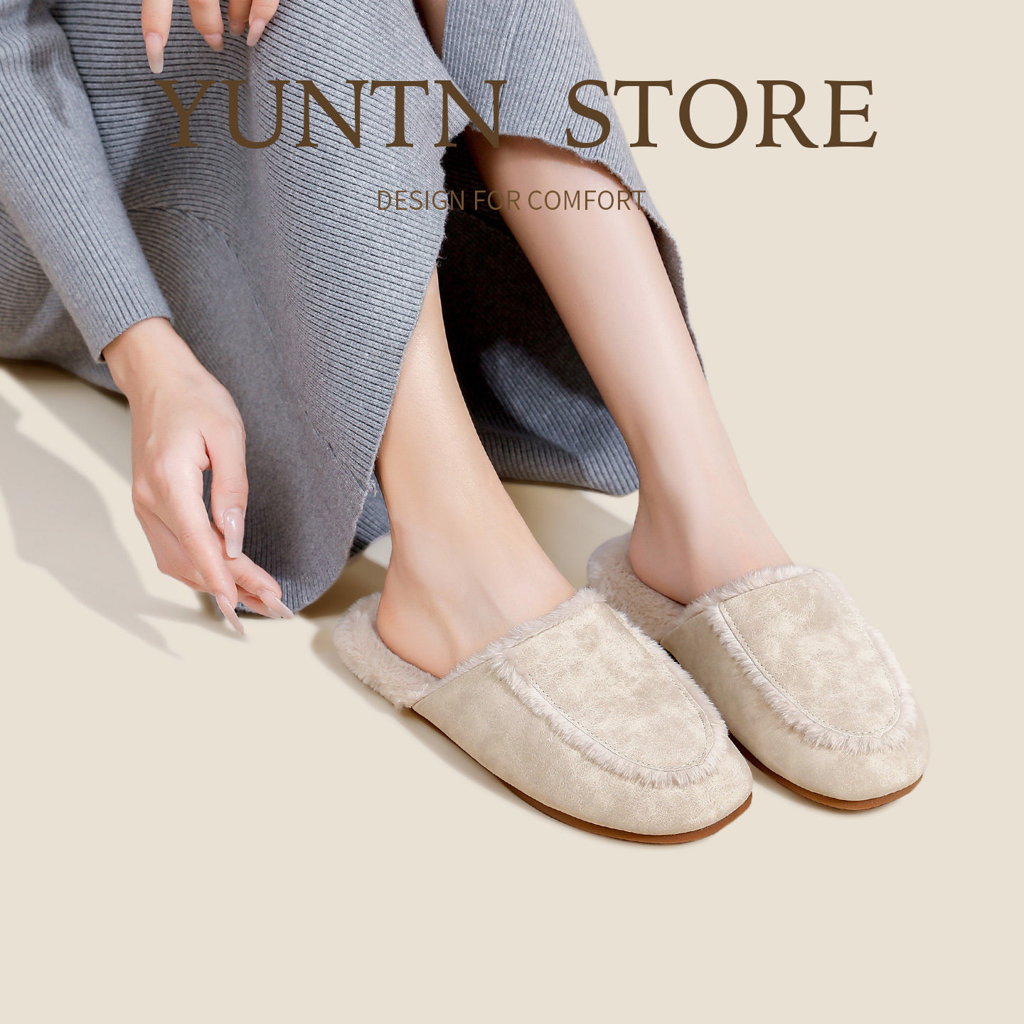 秋冬磨砂哑光高级感防水皮棉拖鞋 女加绒保暖防滑轻便牛筋底居家男