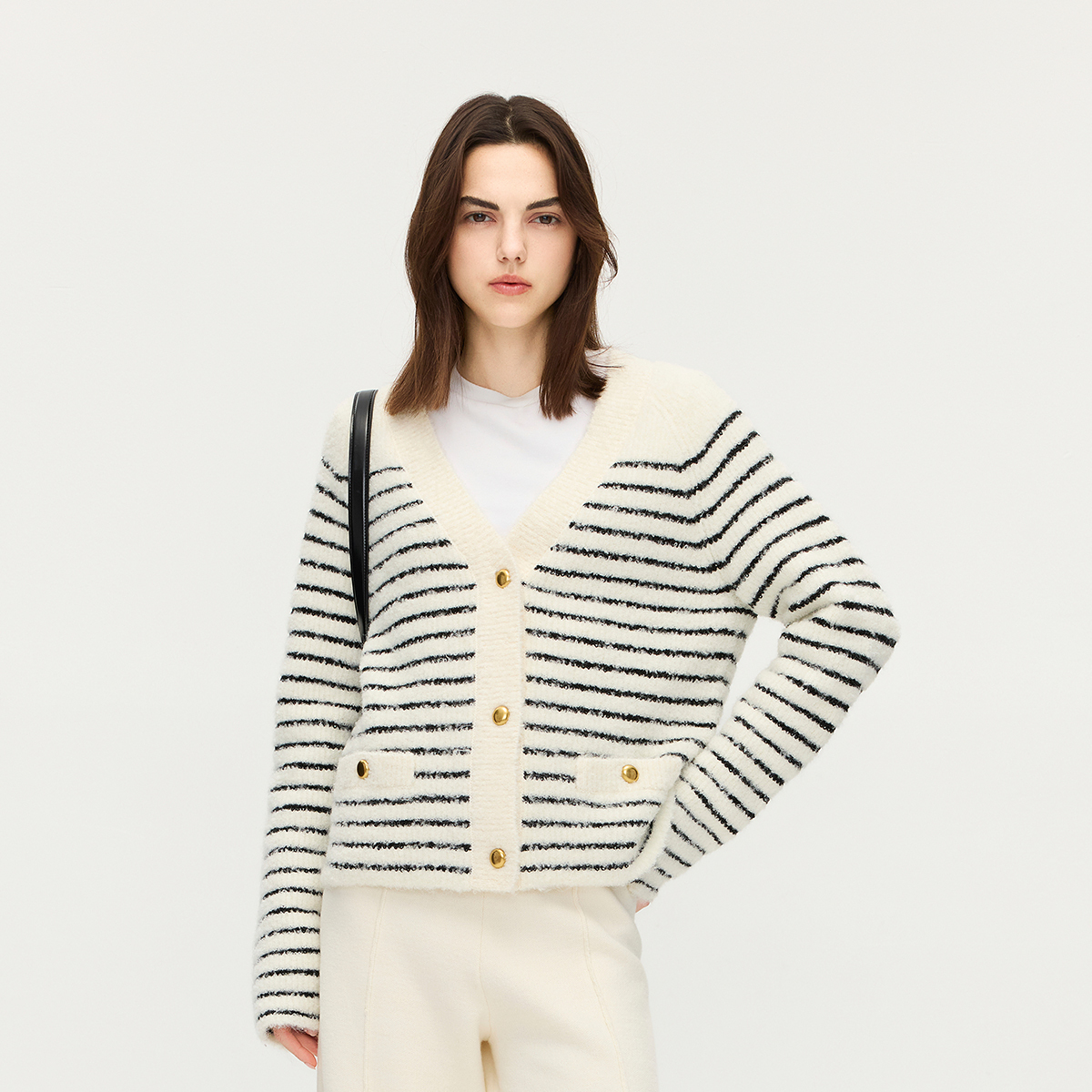 女装 新款 V领宽松针织上衣 2025秋装 秋水伊人优雅小香风毛衣开衫