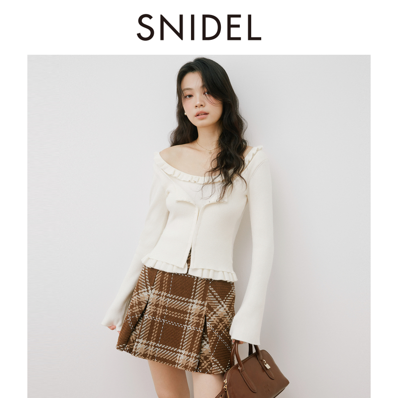 SNIDEL2025秋冬新品 上衣SWNT254301 甜美荷叶边U领假两件针织衫