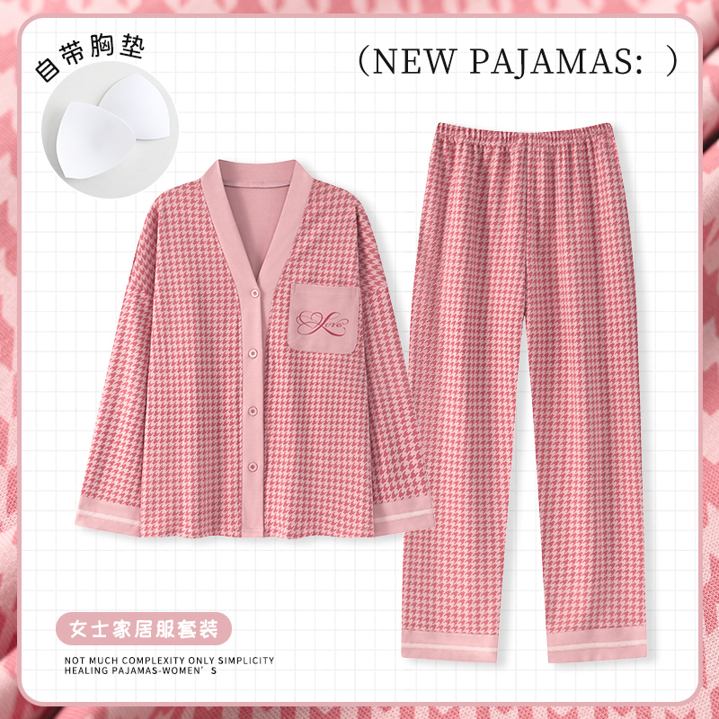 纯棉长袖 家居服套装 春秋款 夏2025年新款 冬 全棉秋冬开衫 睡衣女秋季