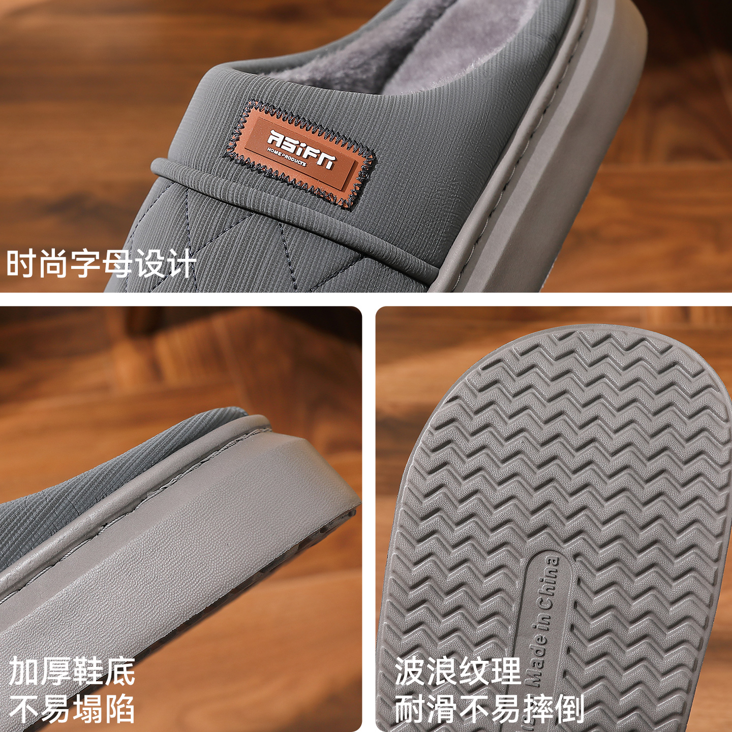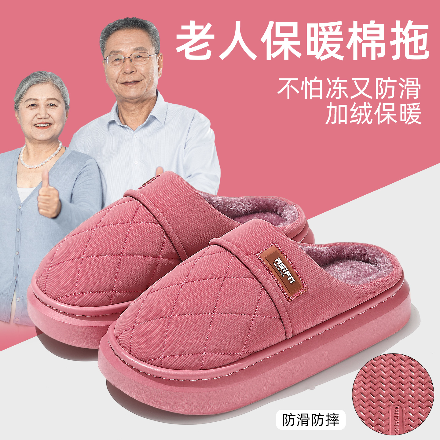 加绒室内家居防滑中老年pu皮棉拖 2025新款 老人防水棉拖鞋 女秋冬季