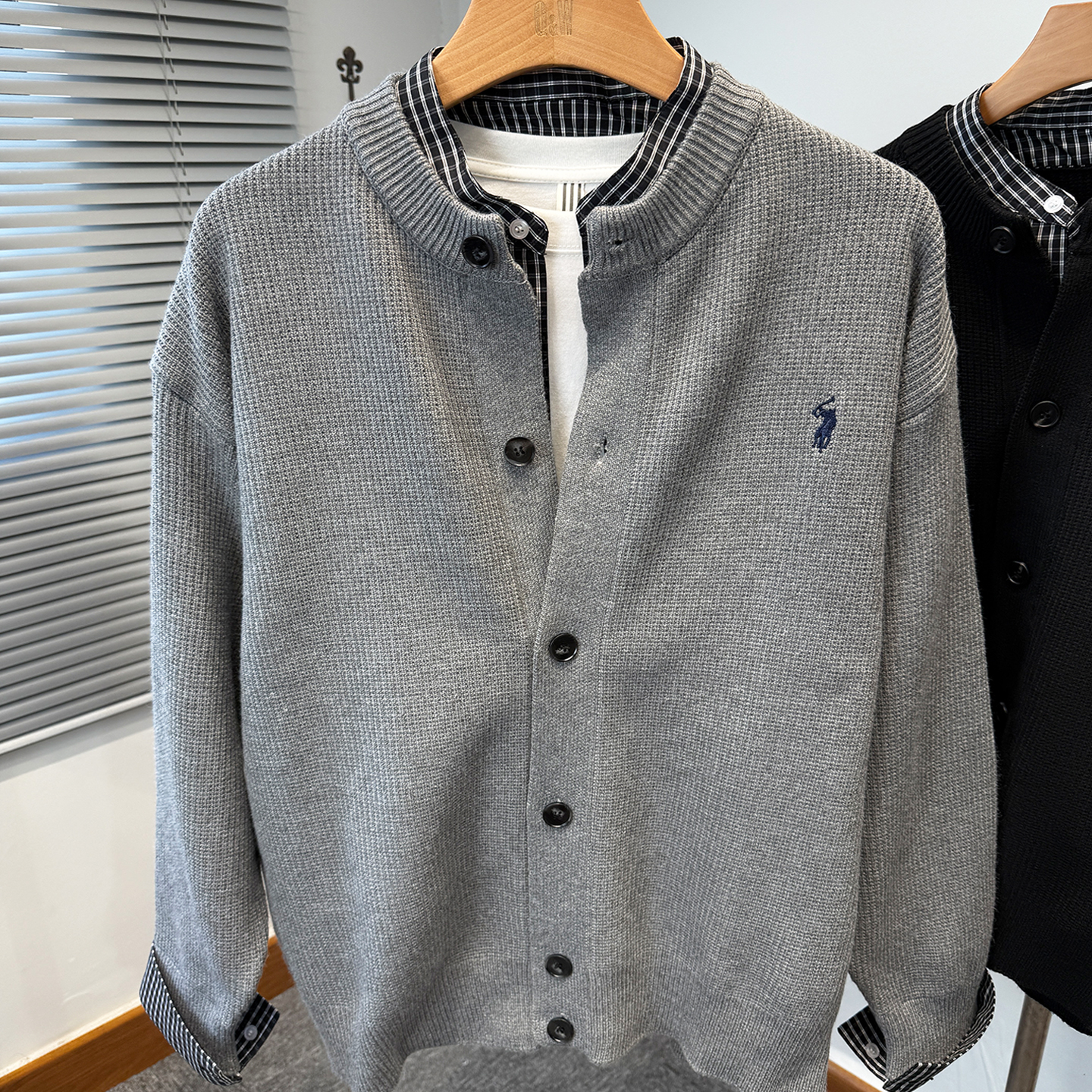 毛衣外套男装 衬衫 新款 男秋冬季 保罗外搭潮流休闲 领假两件针织开衫