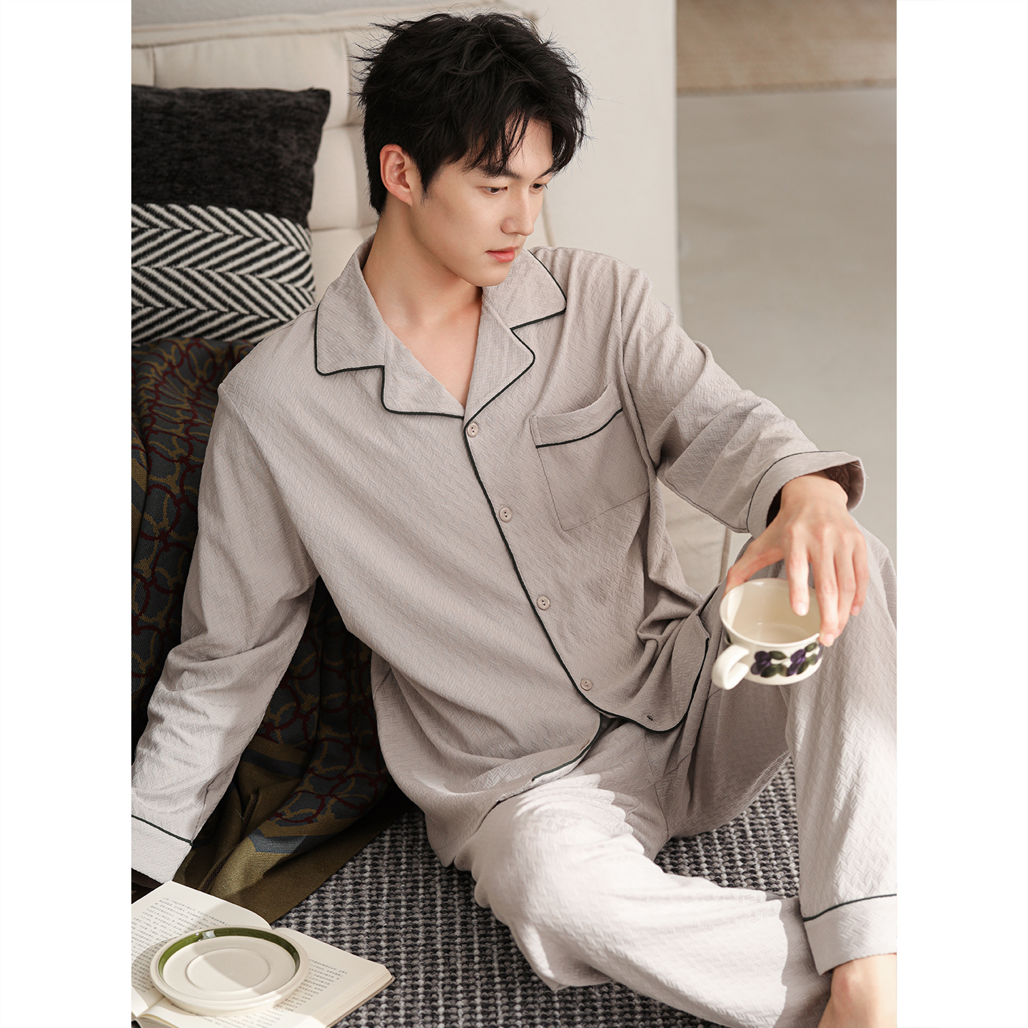 男款 秋季 秋冬家居服套装 春秋款 男式 纯棉长袖 休闲开衫 睡衣男士 大码
