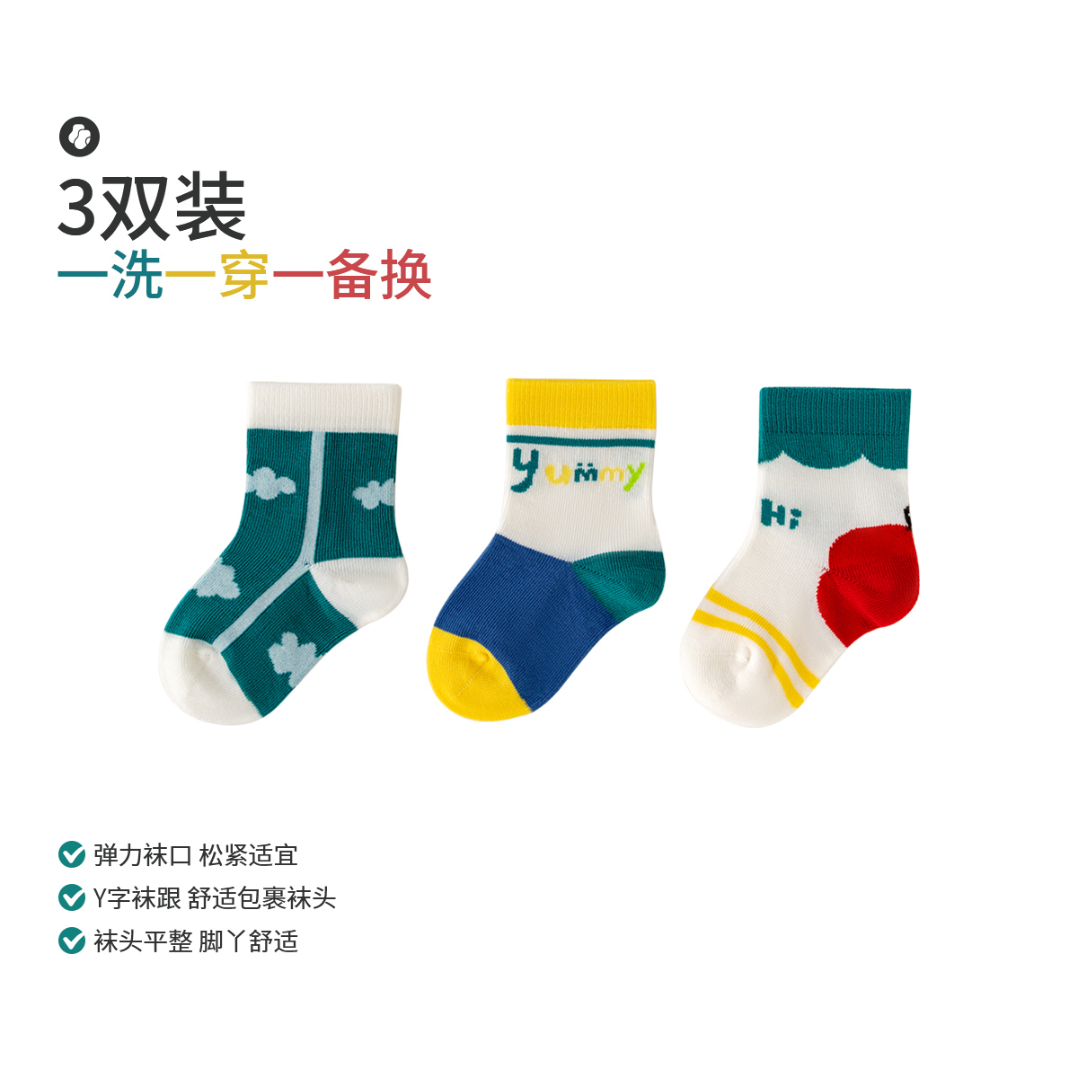 婴儿夏季 袜薄款 新生宝宝可爱袜子中筒松口0 3岁 3双装 aqpa