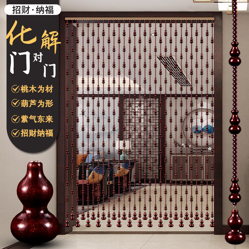 桃木葫芦珠帘水晶门帘家用隔断客厅厕所玄关新款 化解门对门免打孔