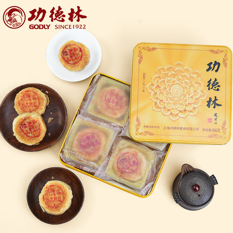 上海功德林中华老字号功德金圣金典净素月饼礼盒苏式 月饼酥皮中秋