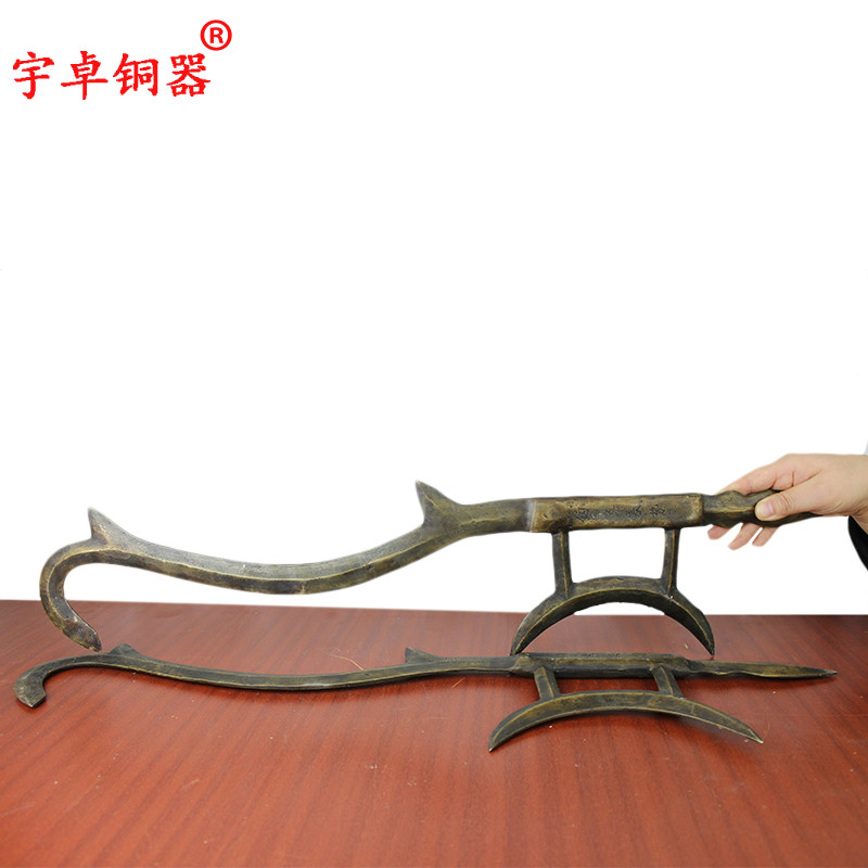 纯铜虎头钩 双钩护手钩月牙黄铜兵器铜镰刀影视道具工艺品摆件