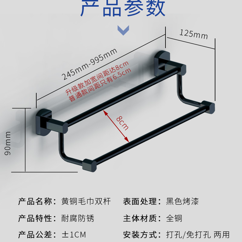 55长卫生间双杆 35cm35短款 全铜雅黑色浴室毛巾架免打孔式
