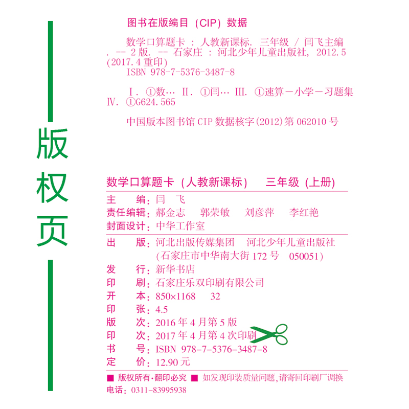 满15元 小学数学口算训练3年级上RJ同步训练辅导 包邮 口算题卡 口算题卡三年级上 三年级上册人教版
