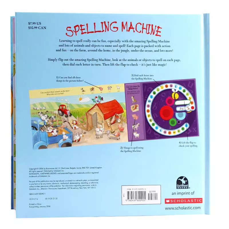 趣味转转书 英文原版 大开本精装 单词拼读游戏书 低幼认知启蒙 Machine Scholastic出版 英文词汇学习 Spelling