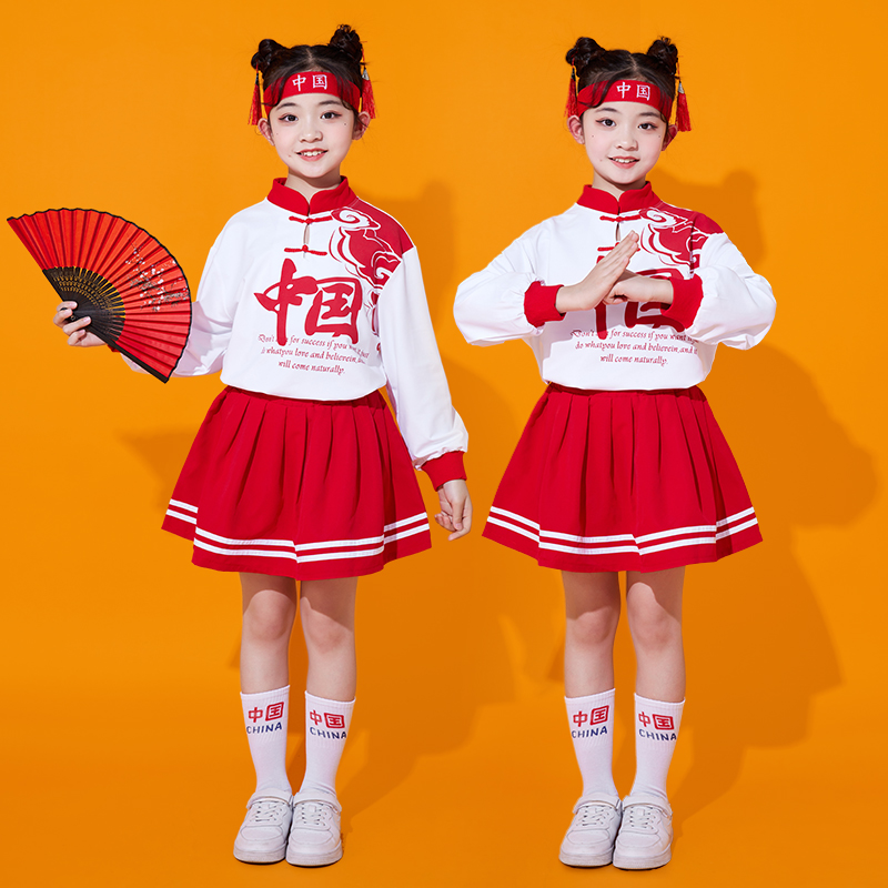 儿童啦啦队演出服中国风小学生运动会班服幼儿园舞蹈表演服装 旦 元