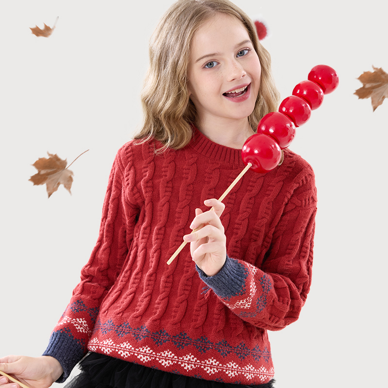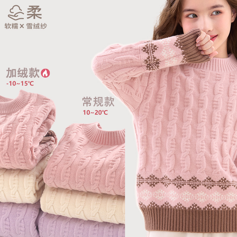 童装 大童加绒加厚上衣女孩线衣打底衫 儿童针织衫 女童毛衣秋冬新款