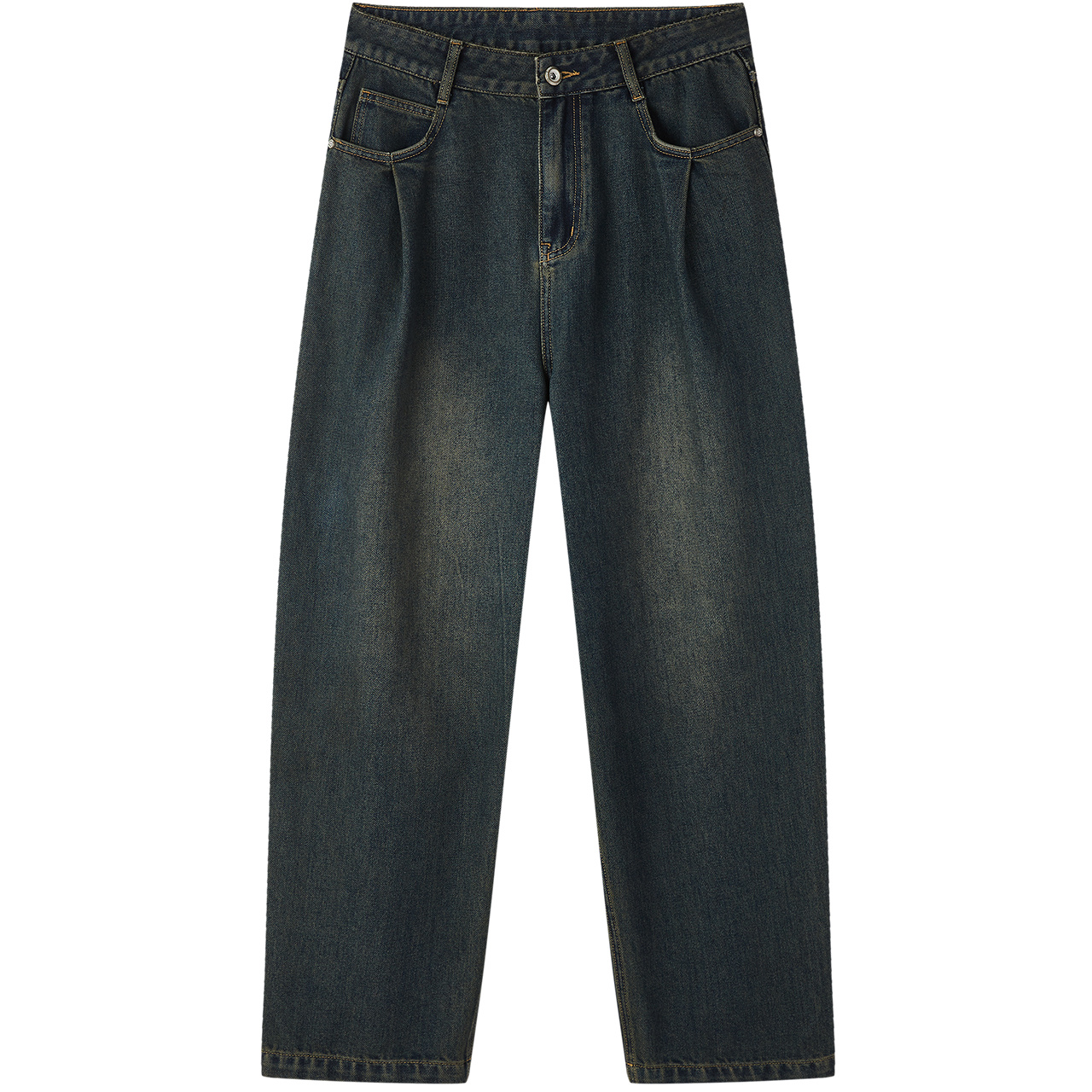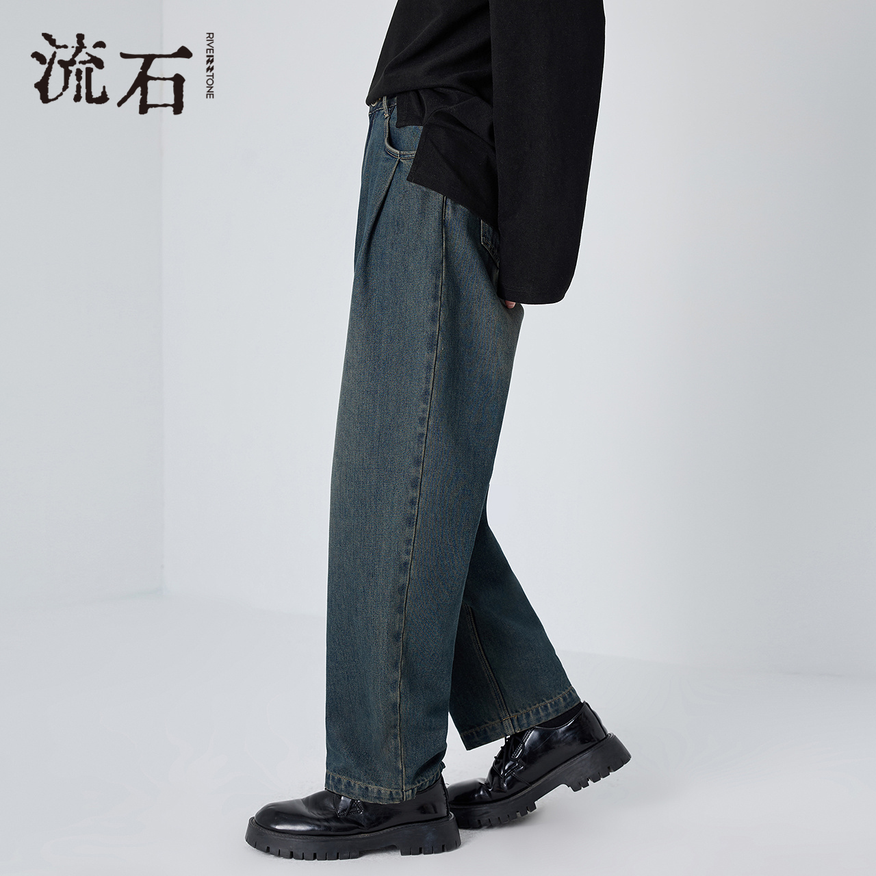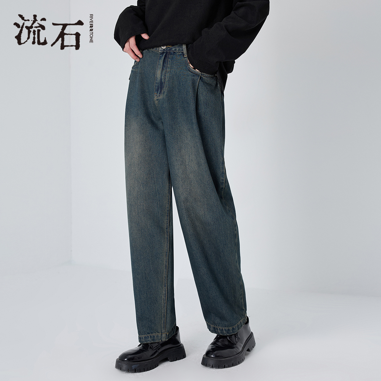 男生宽松直筒长裤 流石男装 春秋季 2025年新款 子 复古水洗耐磨牛仔裤