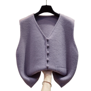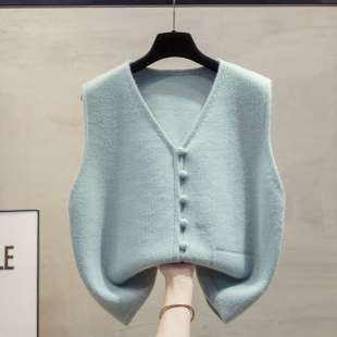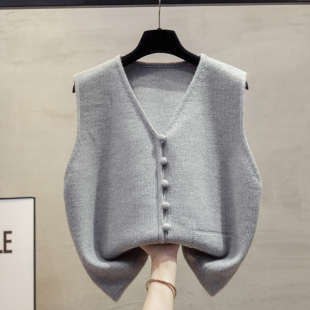 v领针织开衫 宽松外穿马夹涂鸦毛衣坎肩 马甲背心女2025秋冬新款