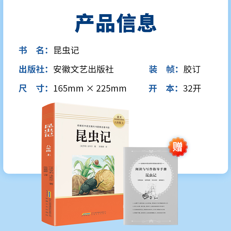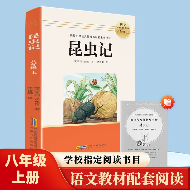 书初中生语文图书籍可搭长征红星照耀中国昆虫记八年级bi读课外世界名著 社8年级上册推荐 昆虫记法布尔原著正版 全译本安徽文艺出版