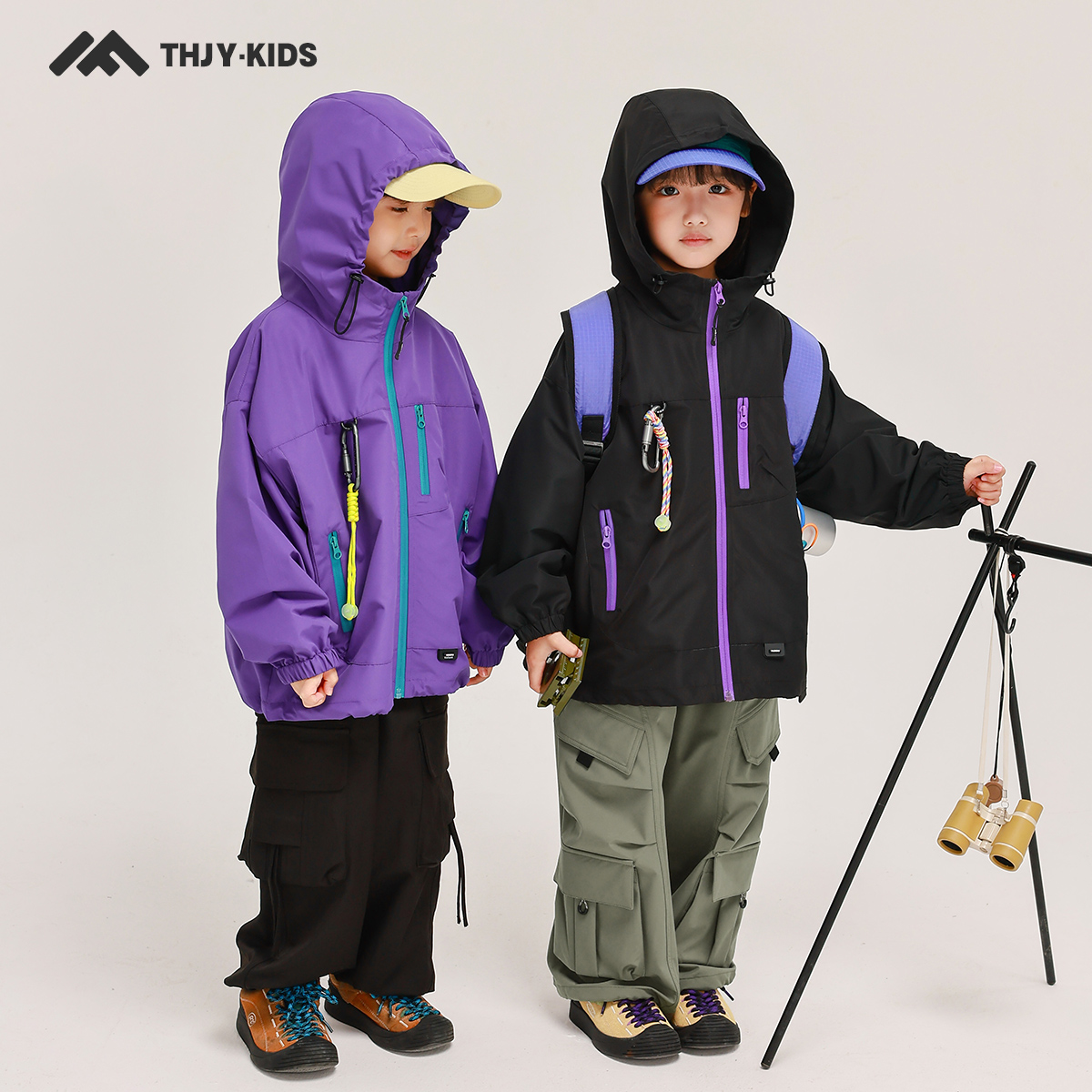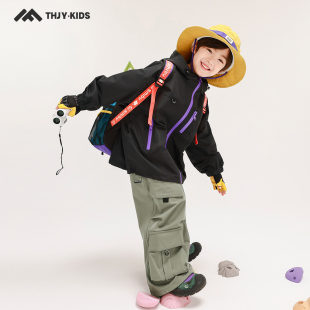 连帽防风上衣 儿童中大童男孩春秋款 男童冲锋衣外套2025秋装 新款