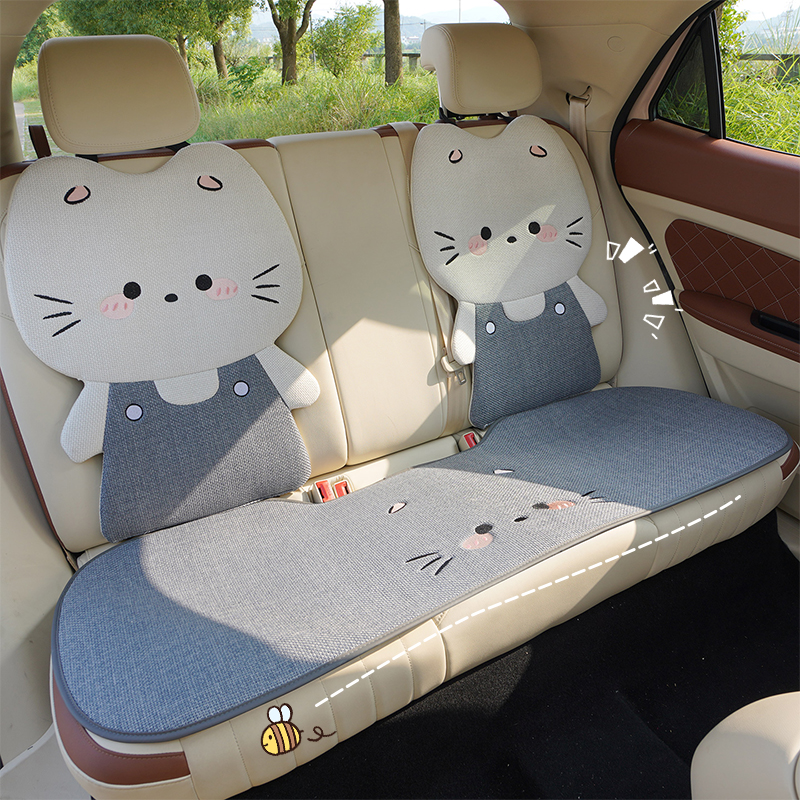 亚麻汽车坐垫夏季 通用适用吉利星愿海鸥座垫套 透气凉垫女可爱四季