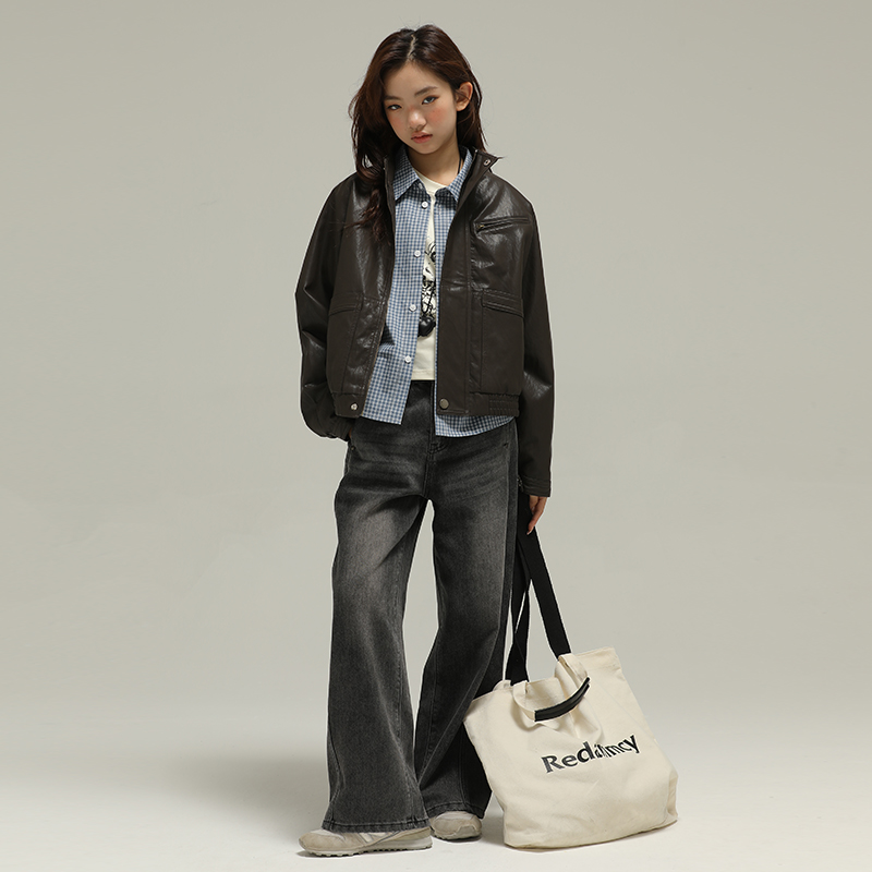 女童裤 儿童裤 子2025秋冬新款 牛仔裤 子 中大童直筒阔腿裤 植木童装