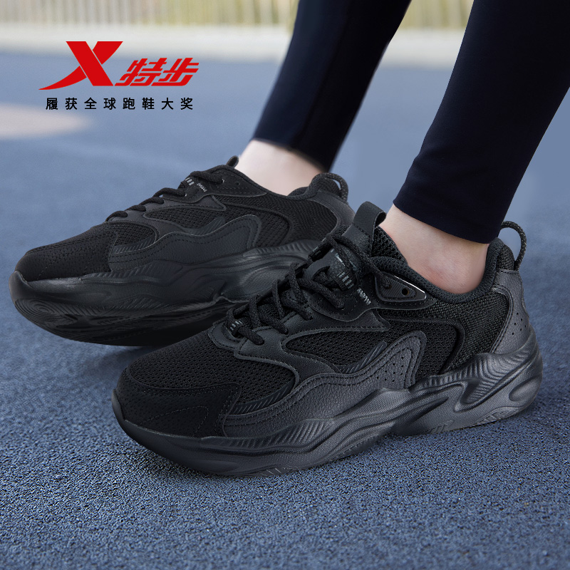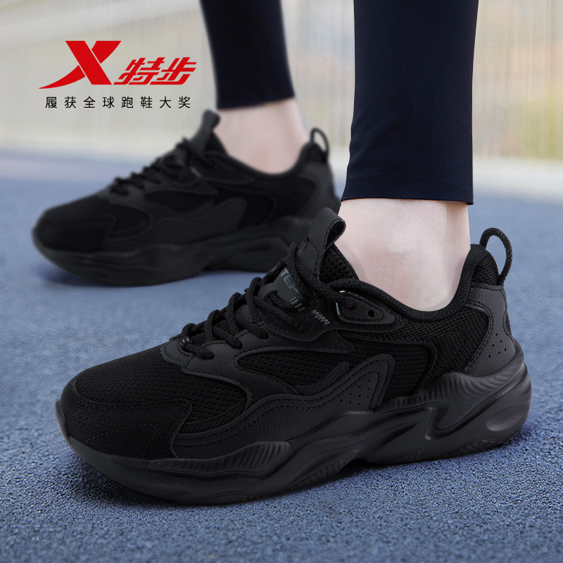 女夏薄款 轻便老爹鞋 2025新款 软底减震休闲鞋 黑色运动鞋 特步跑步鞋