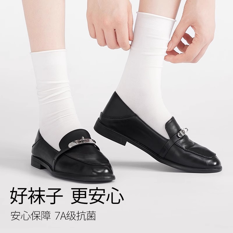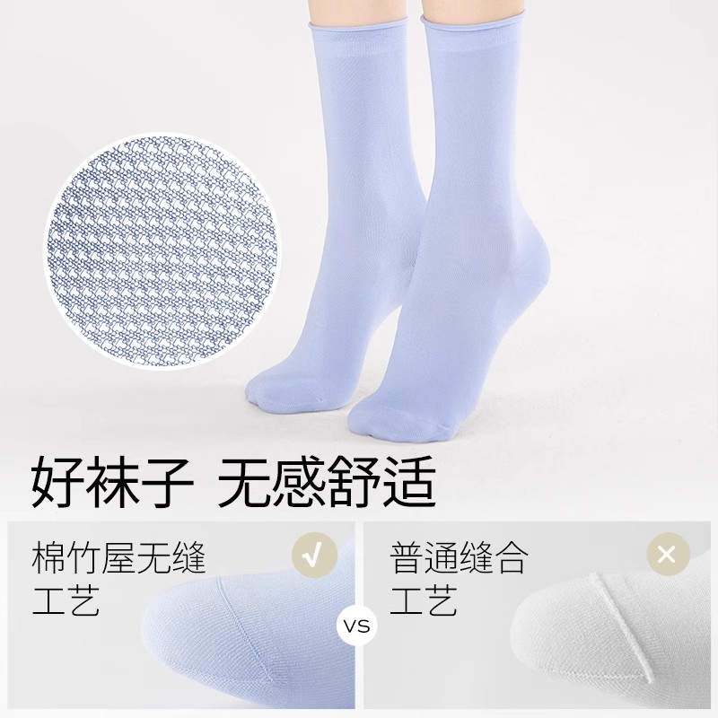 爆款 2025新款 白色莫代尔中筒 薄款 棉竹屋凉感冰冰袜子女堆堆袜夏季