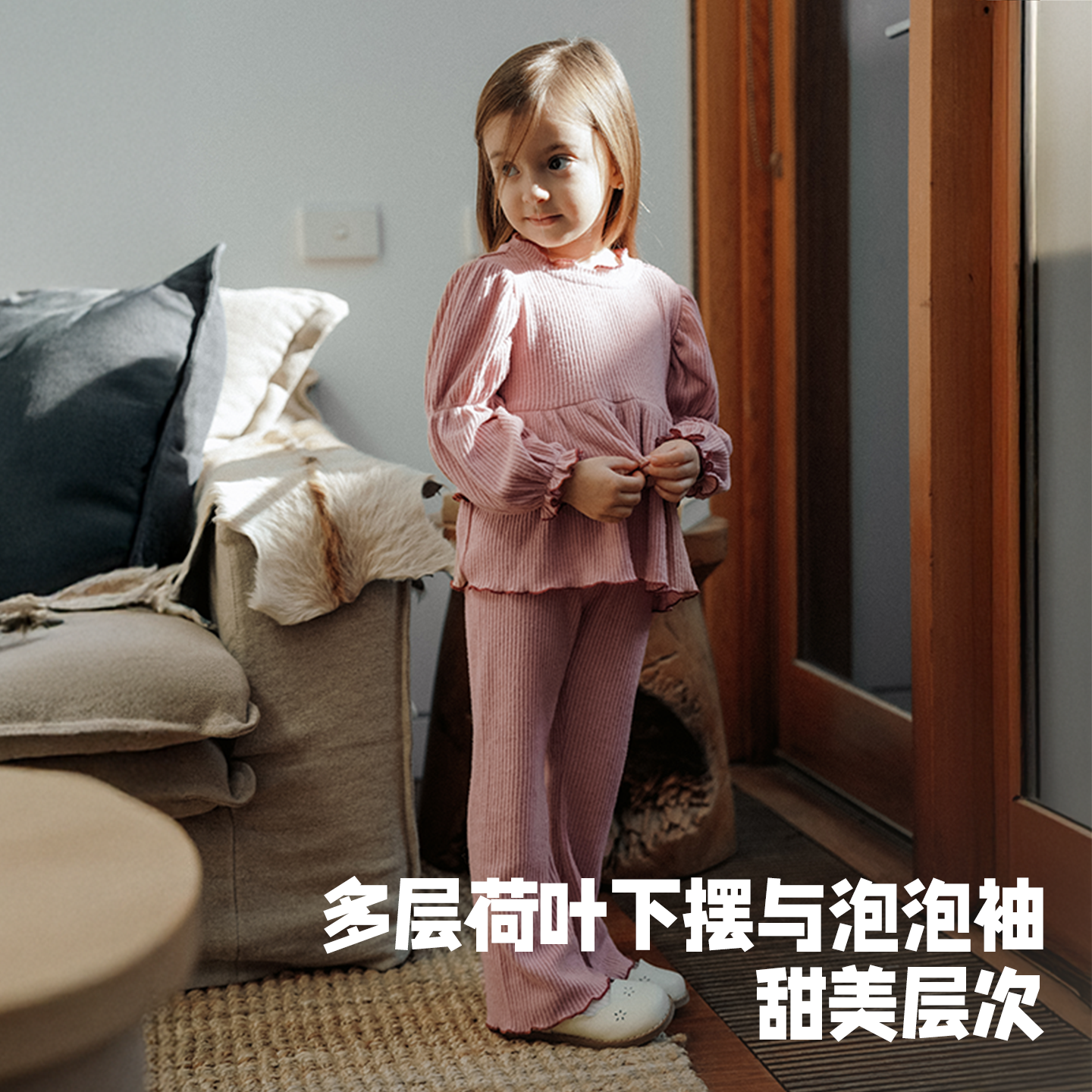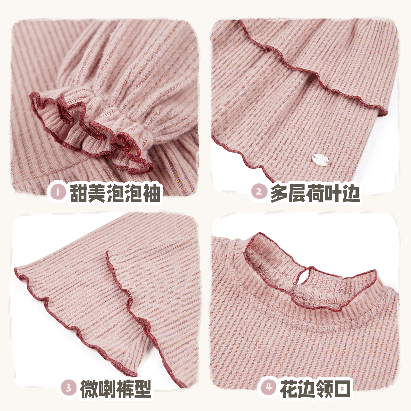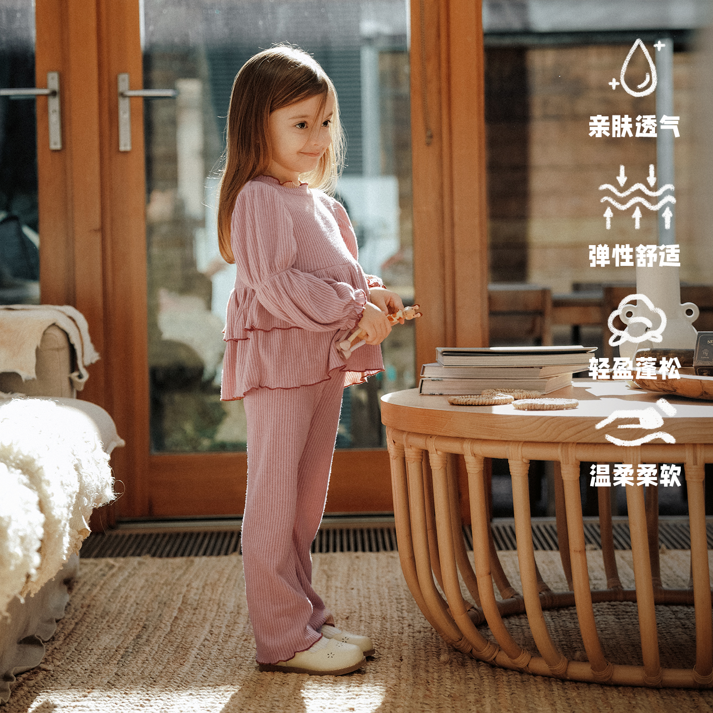 WirraWirra北欧风女宝纯色简约舒适花边上衣宽松长裤 云感罗纹套装