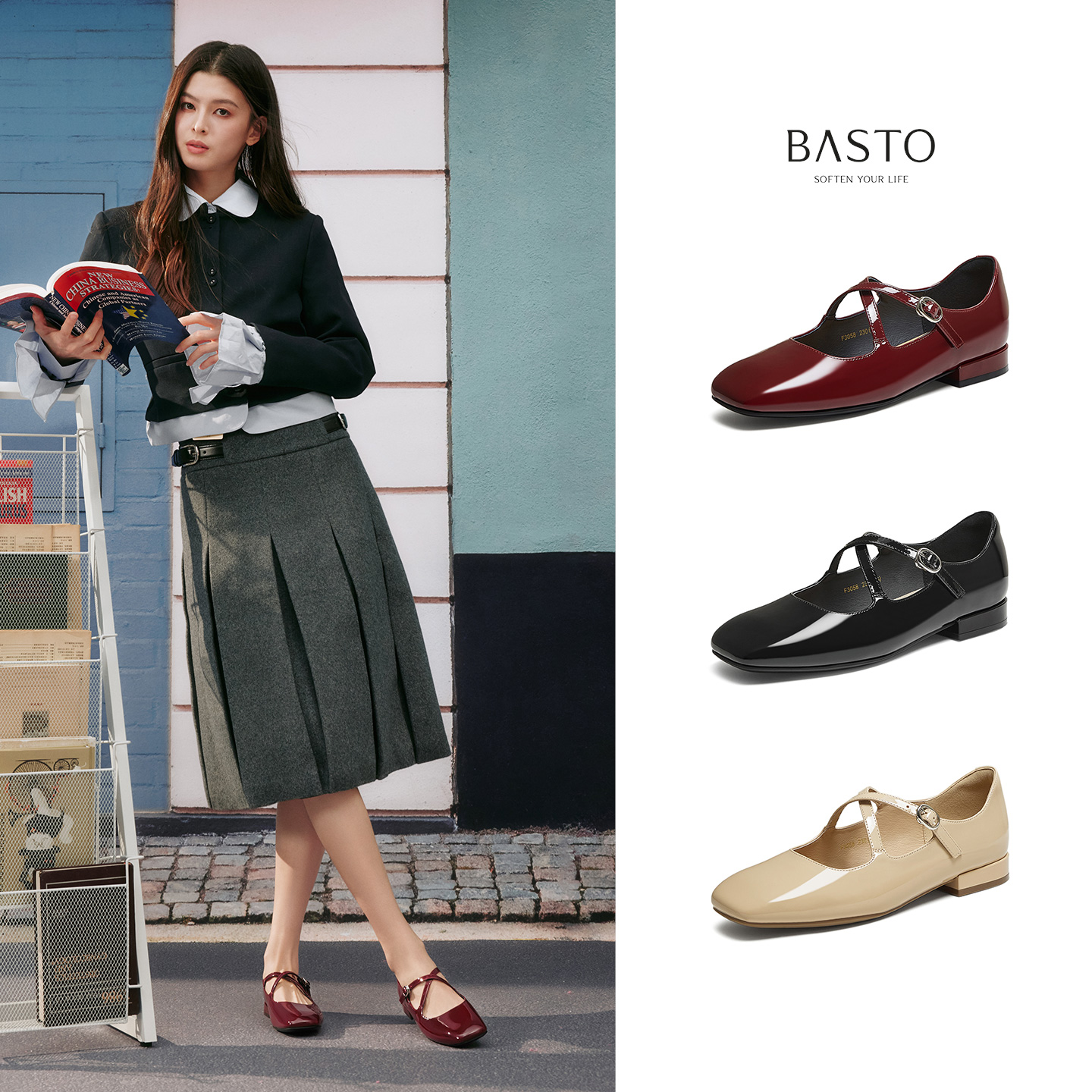 秋季 红色平底鞋 芭蕾法式 浅口婚鞋 达芙妮羊皮单鞋 豆豆鞋 女2025新款