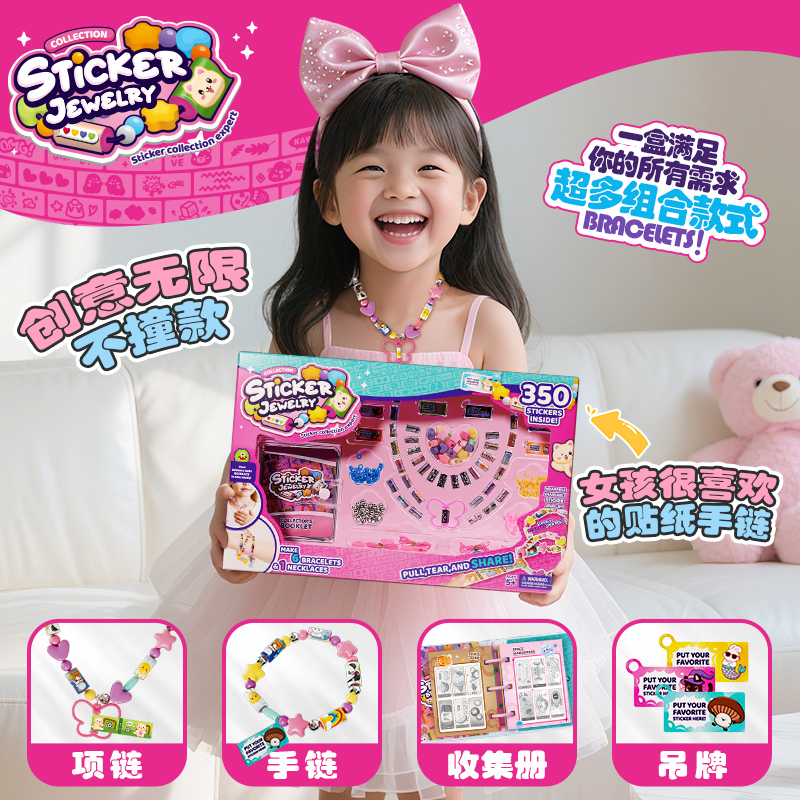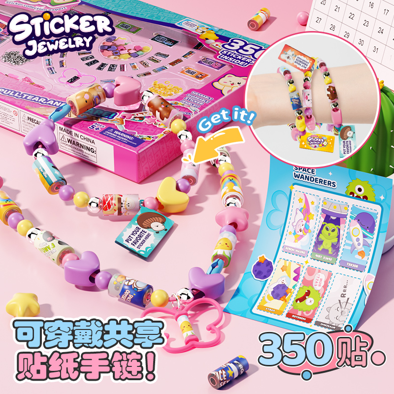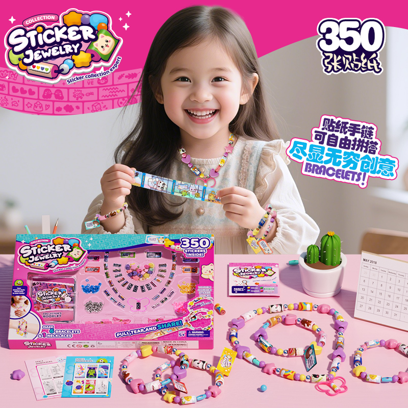 贴纸儿童DIY串珠女孩手串绳咕卡贴贴乐手工礼盒手链玩具项链首饰