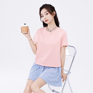 小个子甜辣短款 夏季 上衣 t恤女2025新款 NOB真维斯纯棉正肩粉色短袖