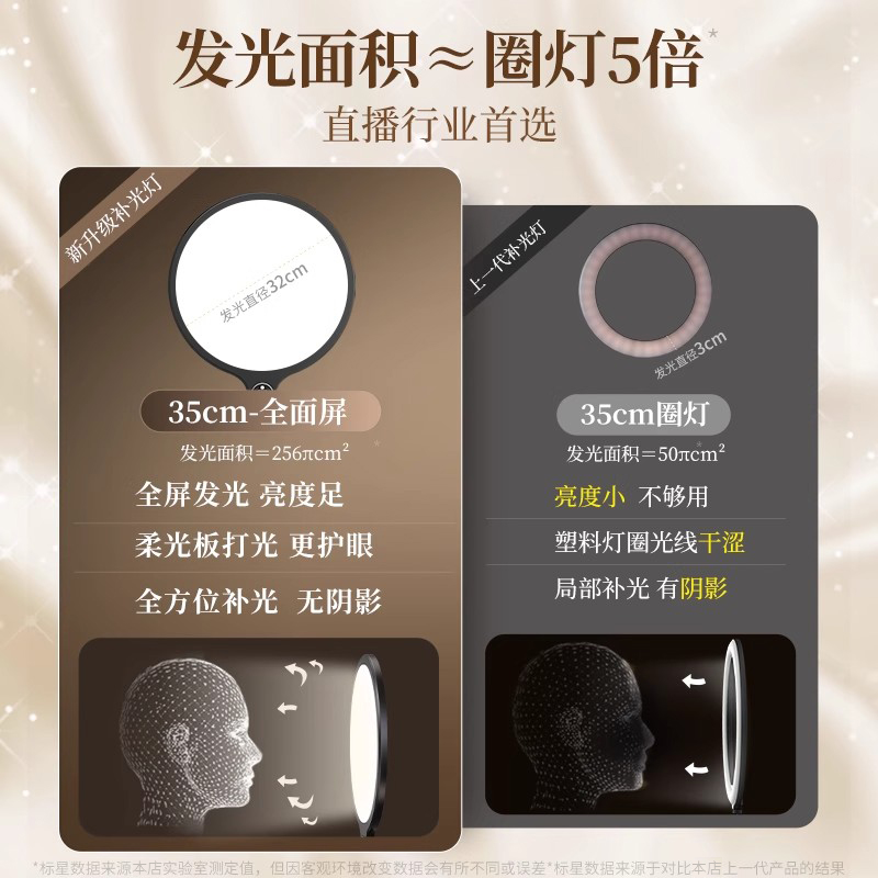 补光灯直播专用面部灯光专业直播间面光柔光灯主播手机桌面落地美颜灯室内打光灯拍照摄影拍摄全面屏环形支架