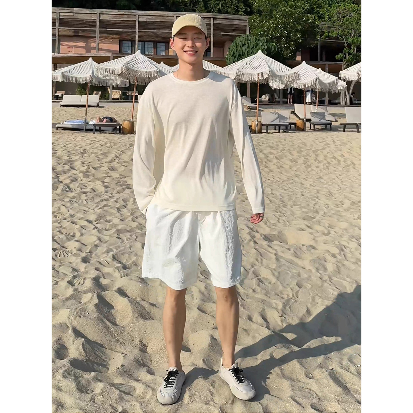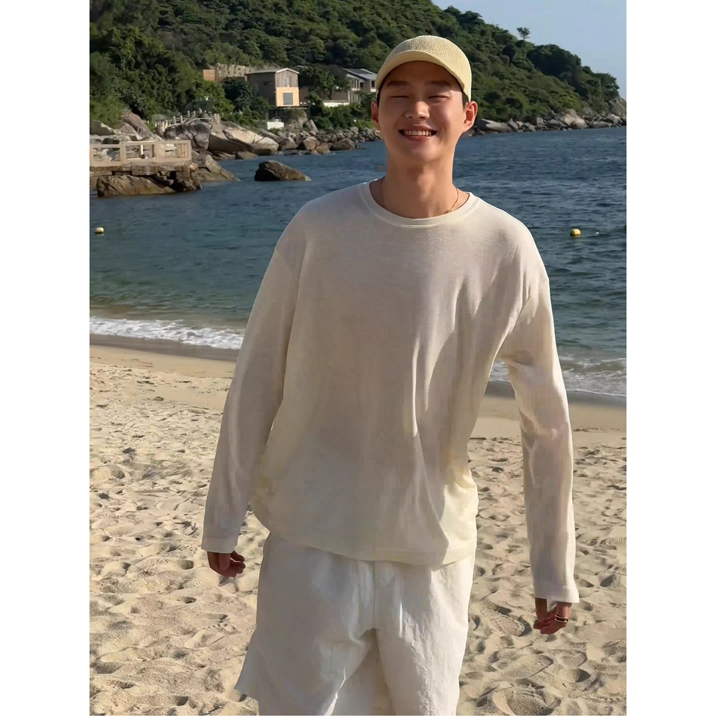 薄纱防晒罩衫 冰丝面膜长袖 老钱风穿搭亚麻皮肤衣美式 夏季 t恤男款