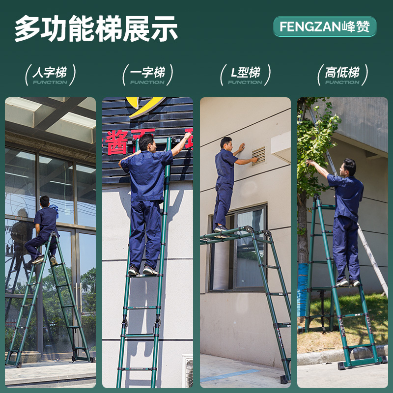 行走人字伸缩梯子铝合金加粗加厚工程可折叠梯家用便携式 多功能梯