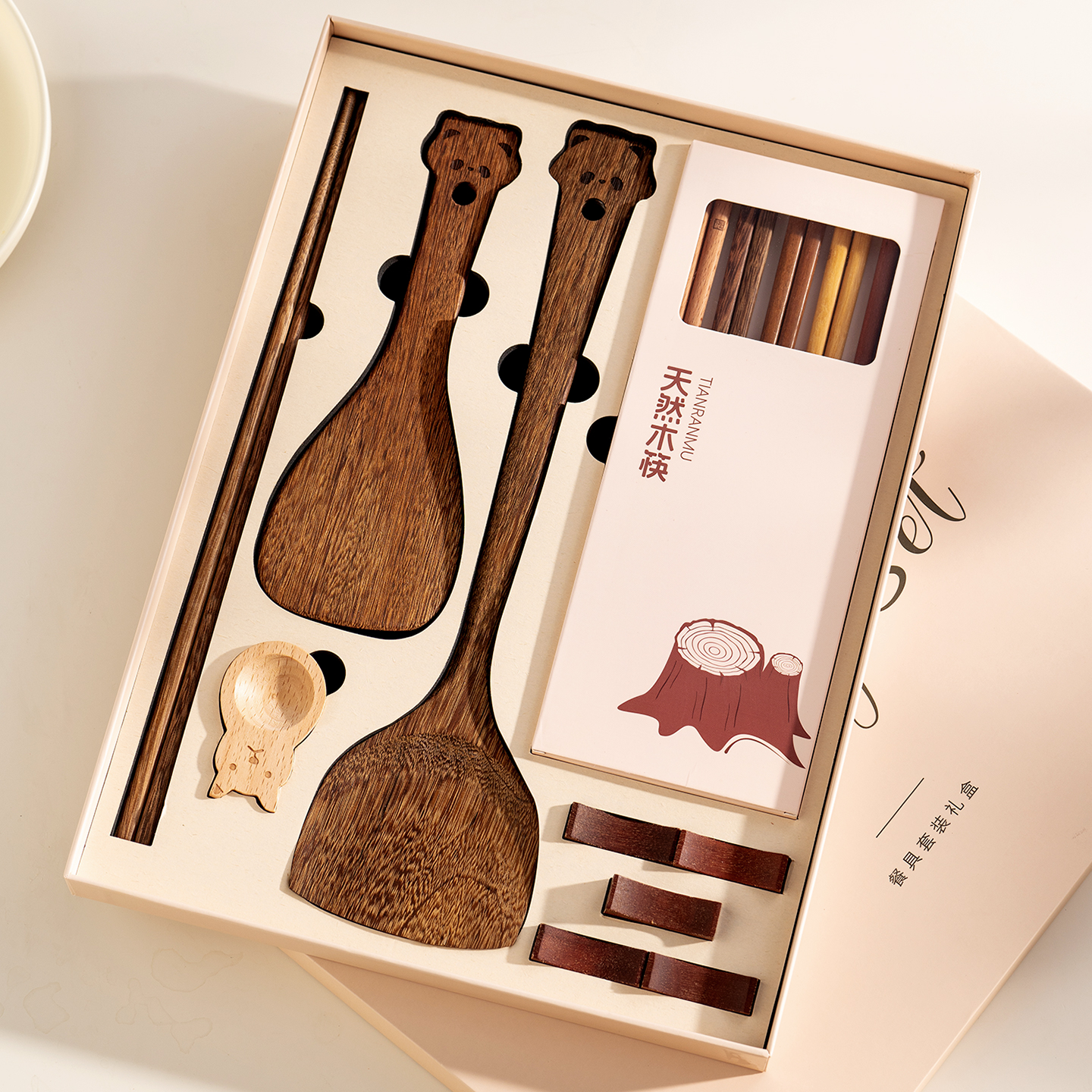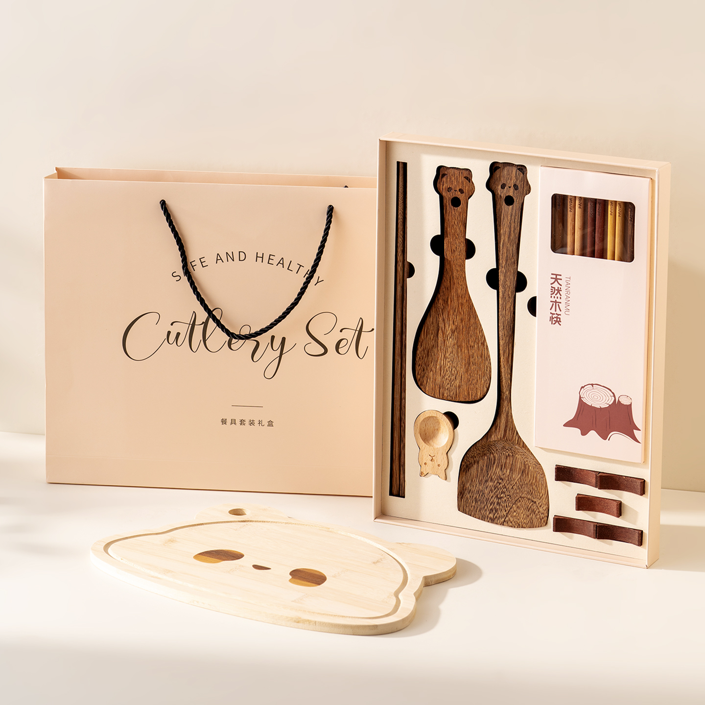 筷子勺子套装 餐具三件套儿童学生专用外带收纳盒 木质一人用便携式