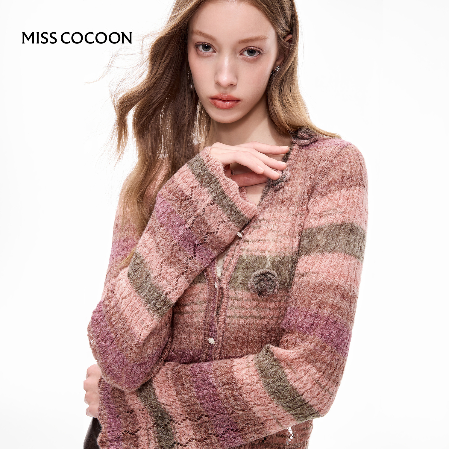 显瘦羊毛针织开衫 MISSCOCOON可可尼条纹渐变色外套女2025秋季 新款
