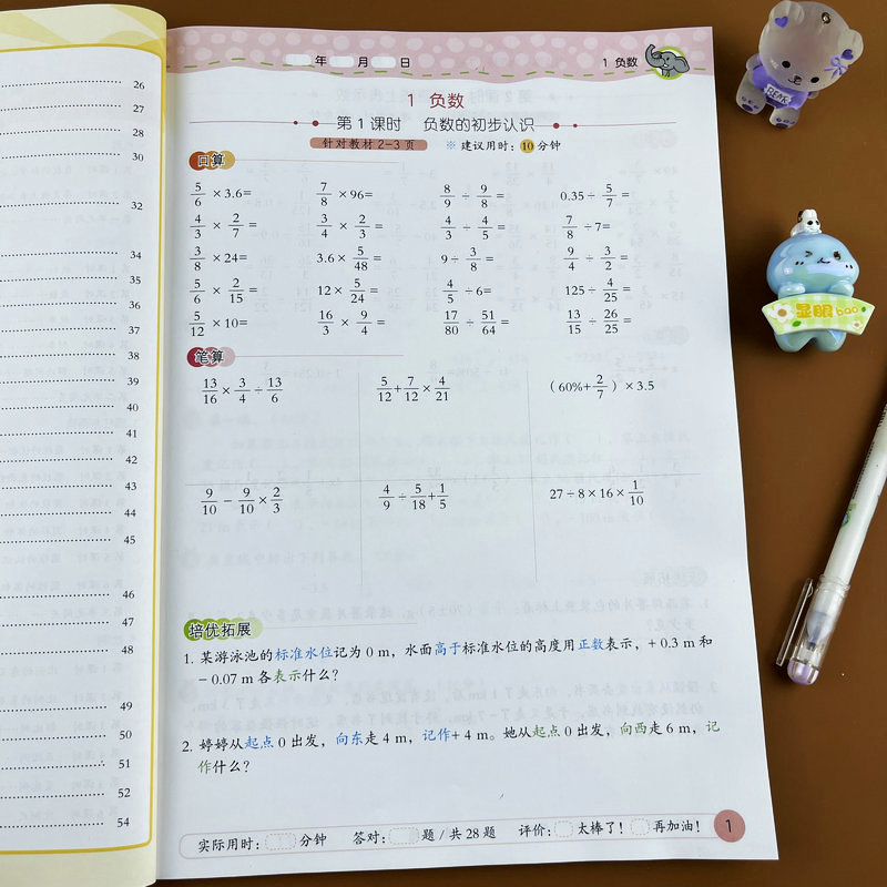 表面积体积解比例小数分数加减乘除混合运算 应用题圆柱与圆锥 小学数学课时培优同步练习册六年级下册人教版 基础培优拓展口算竖式