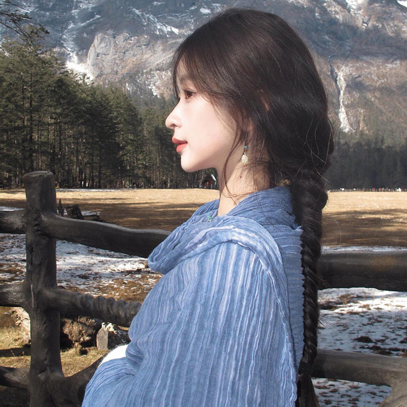 民族风蓝色文艺薄款 棉麻围巾女大西北川西旅游丝巾氛围感披肩外搭