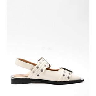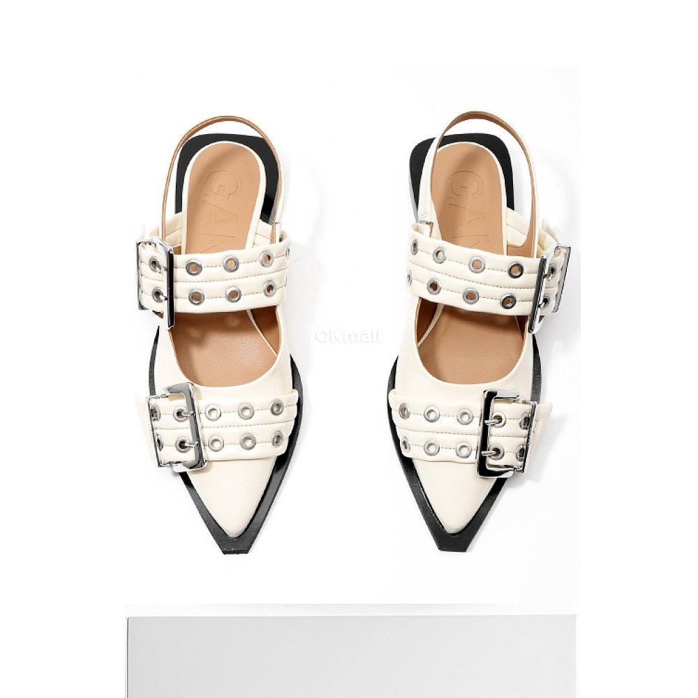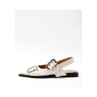 135 S2842 平底凉鞋 韩国直邮GANNI象牙色淑女扣尖头芭蕾舞鞋