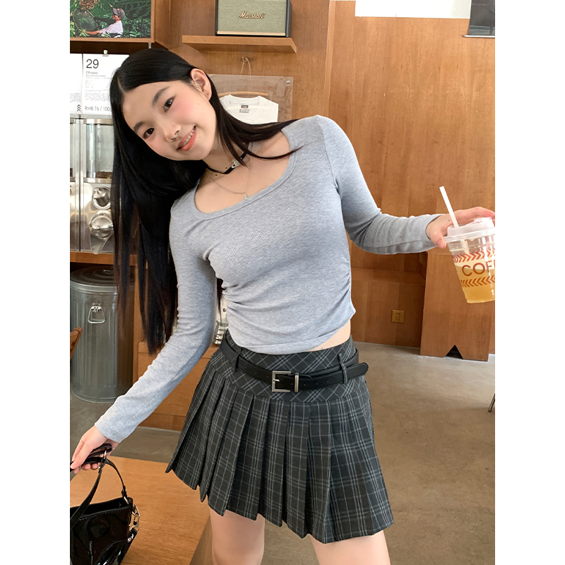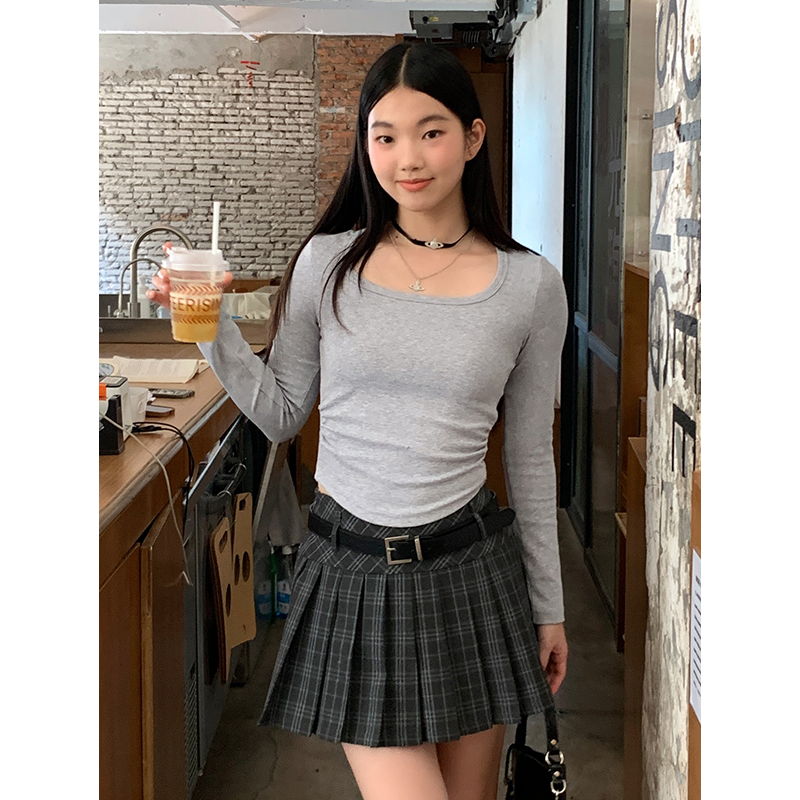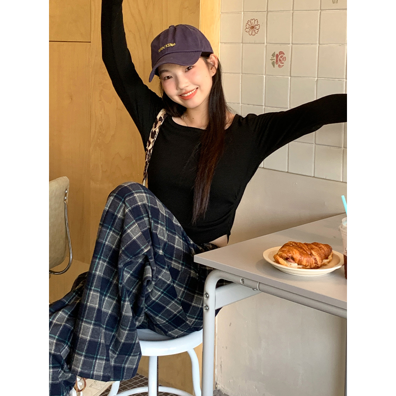修身 打底衫 百搭上衣服 T恤女春秋内搭短款 设计感小众正肩纯棉长袖