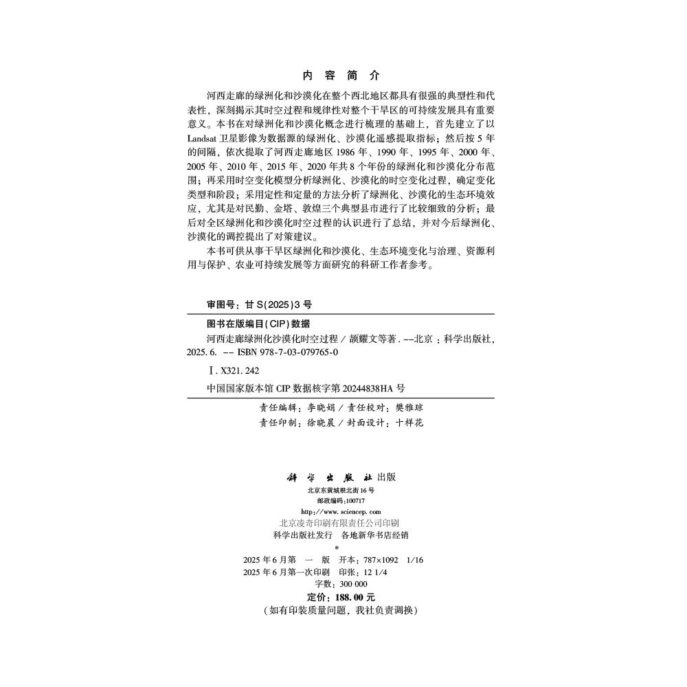 河西走廊绿洲化沙漠化时空过程 9787030797650 颉耀文等