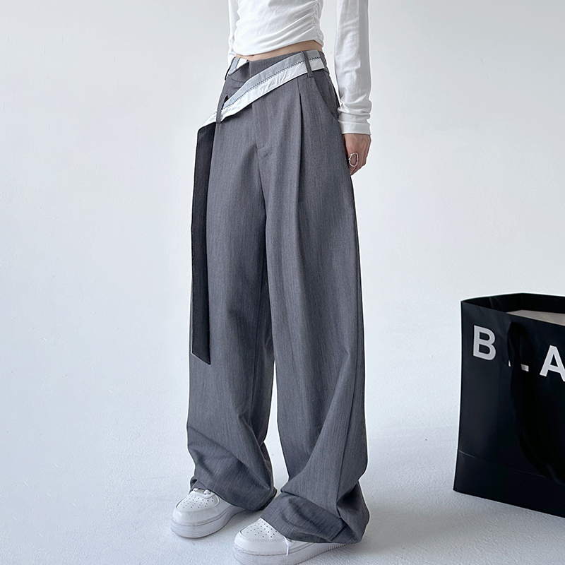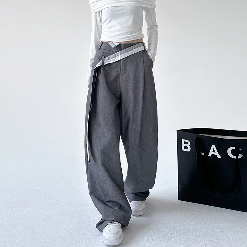 裤 子宽松显瘦垂感直筒阔腿裤 女2025春秋季 设计感裤 子 新款 灰色西装